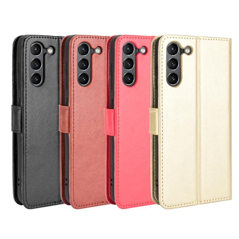 Θήκη δέρματος οριζόντιας αναδίπλωσης με υφή Crazy Horse για Samsung Galaxy S21 FE με βάση & υποδοχές καρτών & κορδόνι (Χρυσό)