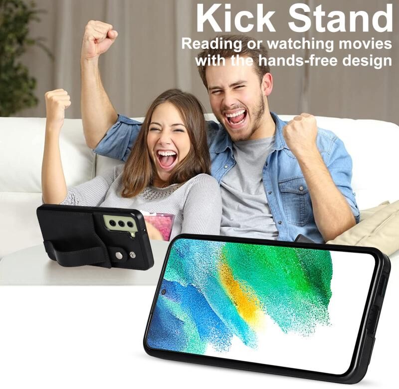 Για Samsung Galaxy S21 FE Crazy Horse Υφή Shockproof TPU + PU δέρμα υπόθεση με υποδοχή κάρτας & στήριγμα λουράκι καρπού (Μαύρο)