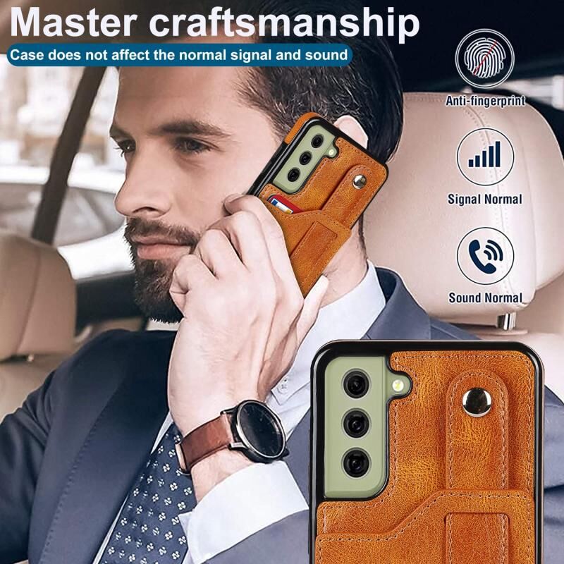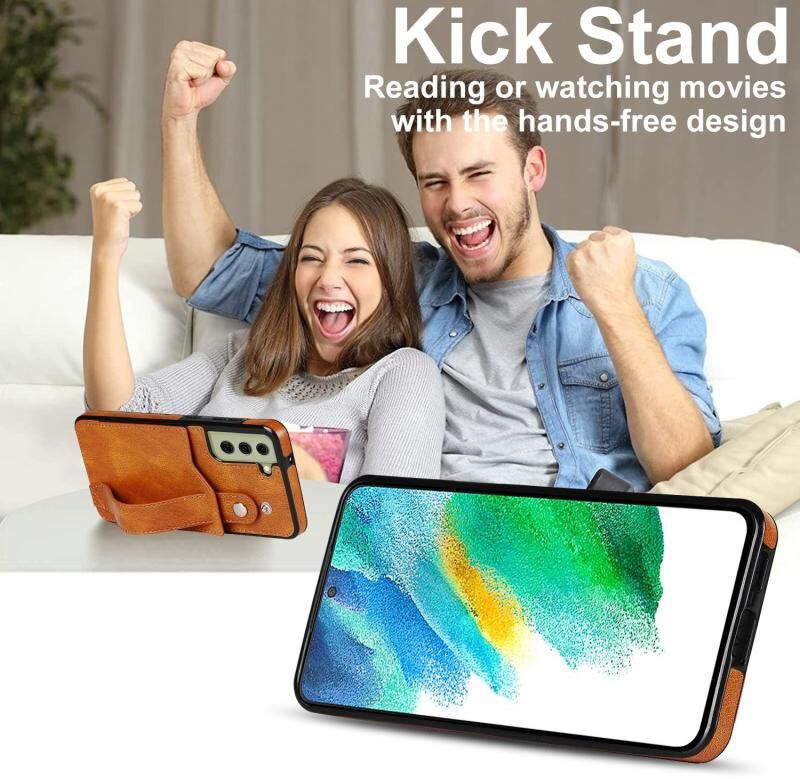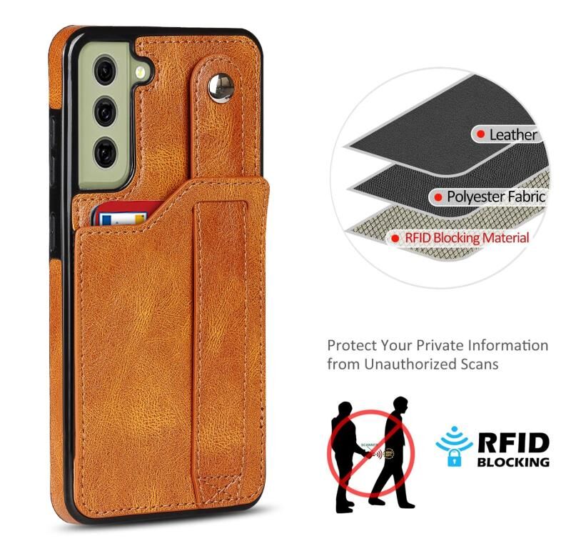 Για Samsung Galaxy S21 FE Crazy Horse Υφή Shockproof TPU + PU δέρμα υπόθεση με υποδοχή κάρτας & στήριγμα λουράκι καρπού (κίτρινο)