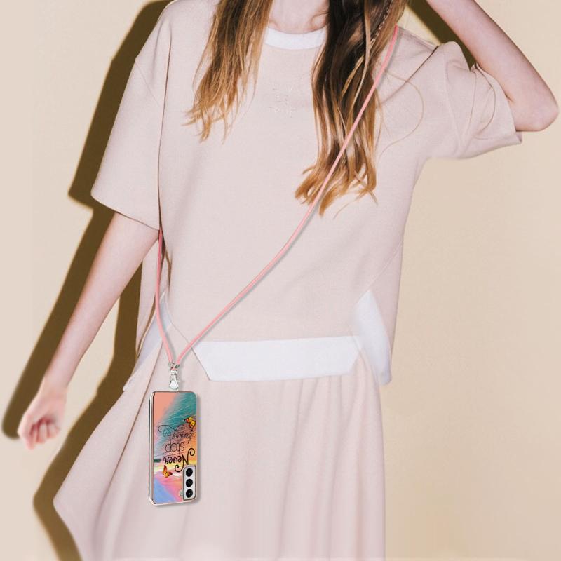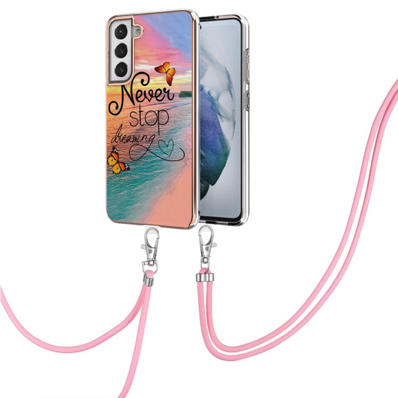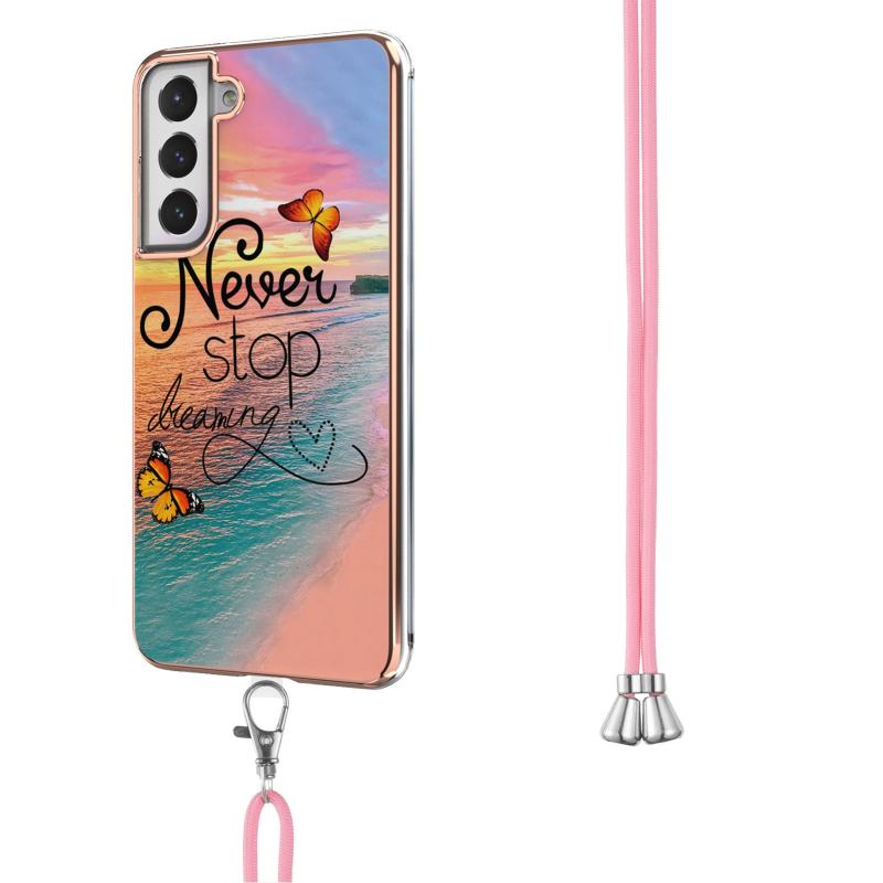 Θήκη για Samsung Galaxy S21 FE με σχέδιο ηλεκτρολυτικής επιμετάλλωσης IMD, από TPU ανθεκτικό σε κρούσεις με λουρί λαιμού (Πεταλούδα που κυνηγάει όνειρα)