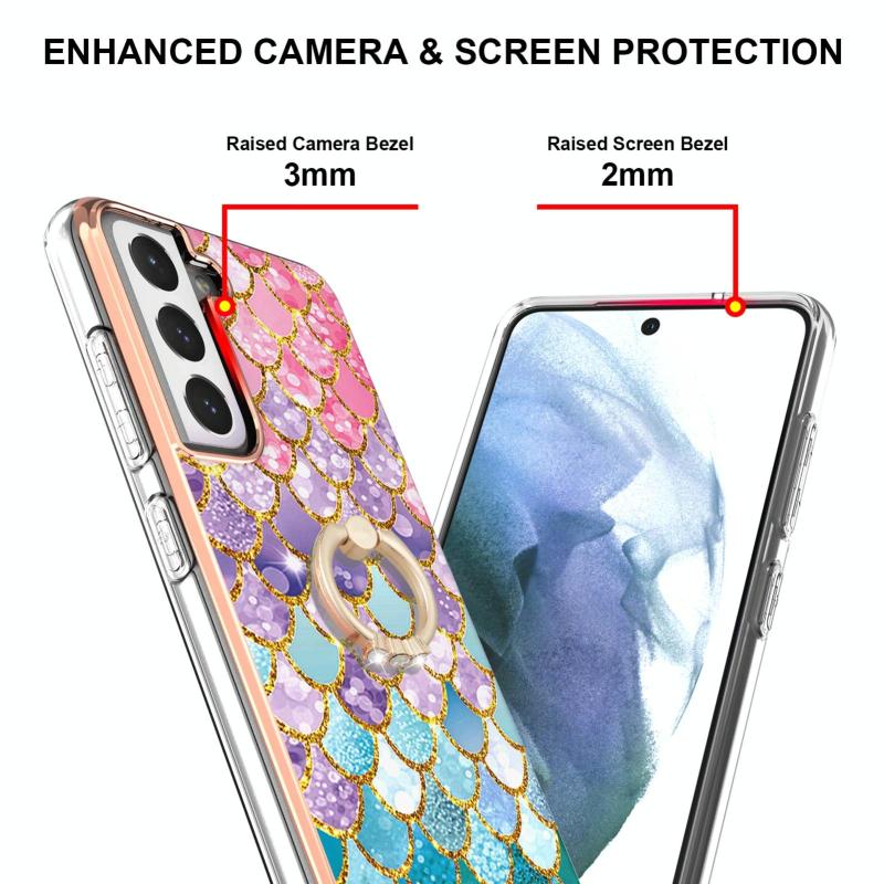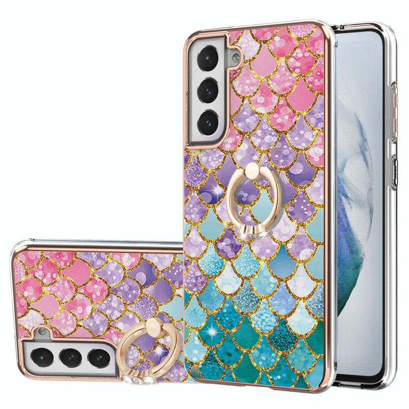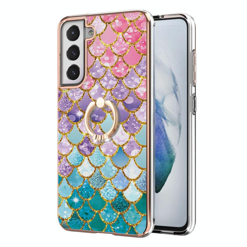 Θήκη για Samsung Galaxy S21 FE με Επικάλυψη Ηλεκτρολυτικής Επεξεργασίας, IMD TPU, Αντικραδασμική με Δαχτυλίδι Στήριξης και Ρητίνες (Πολύχρωμες Λέπια)