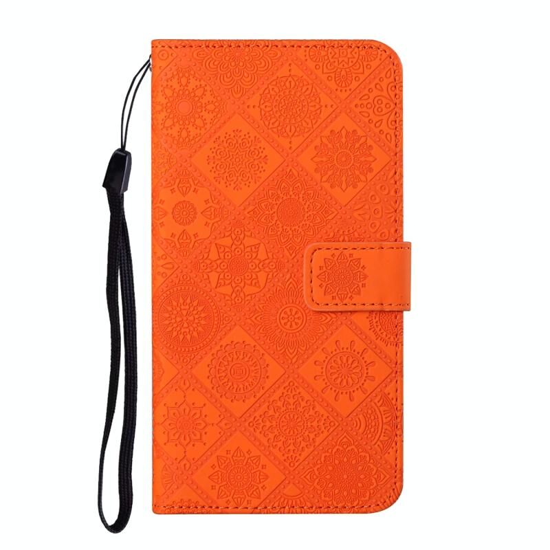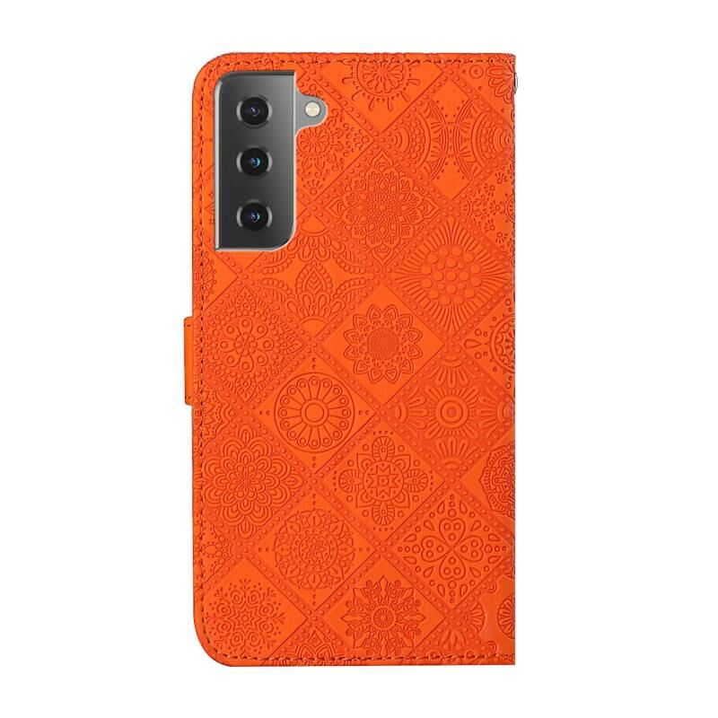 Για Samsung Galaxy S21 FE Ethnic Style ανάγλυφο μοτίβο οριζόντια Flip δερμάτινη θήκη με θήκη & υποδοχές για κάρτες & πορτοφόλι & κορδόνι (πορτοκαλί)