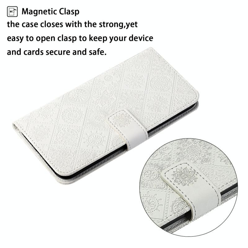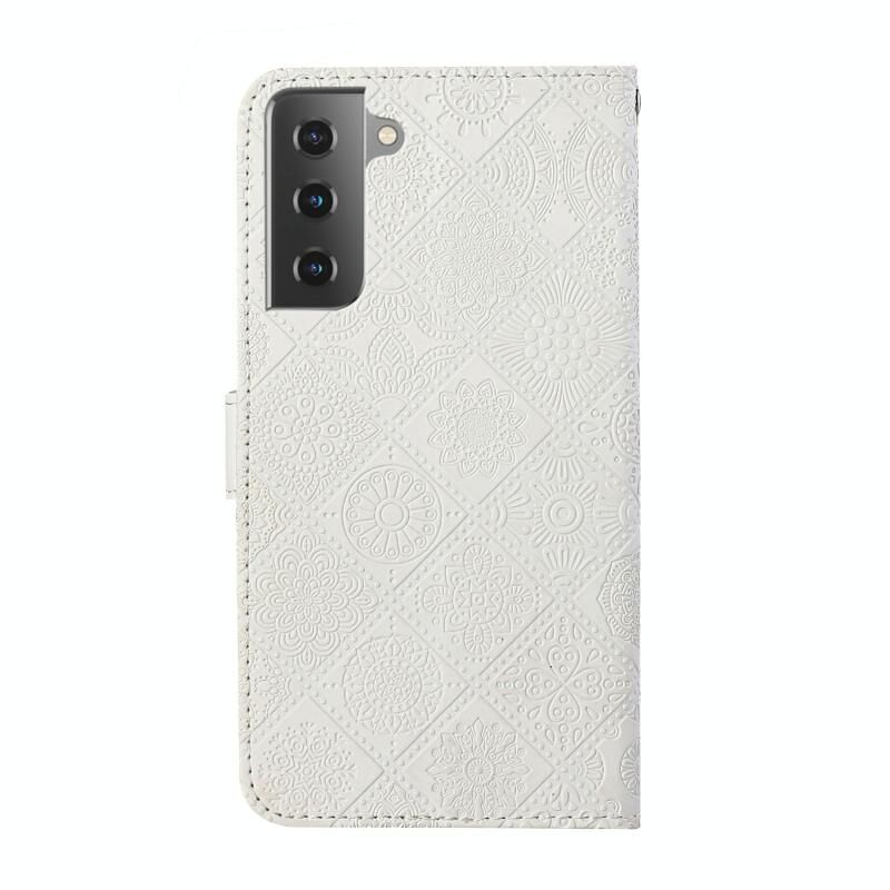 Για Samsung Galaxy S21 FE Ethnic Style ανάγλυφο μοτίβο οριζόντια Flip δερμάτινη θήκη με θήκη & υποδοχές για κάρτες & πορτοφόλι & κορδόνι (λευκό)