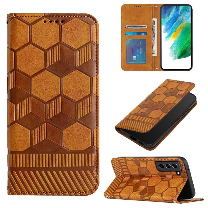Για Samsung Galaxy S21 FE Ποδόσφαιρο υφή μαγνητική δερμάτινη θήκη Flip τηλέφωνο (Χακί)