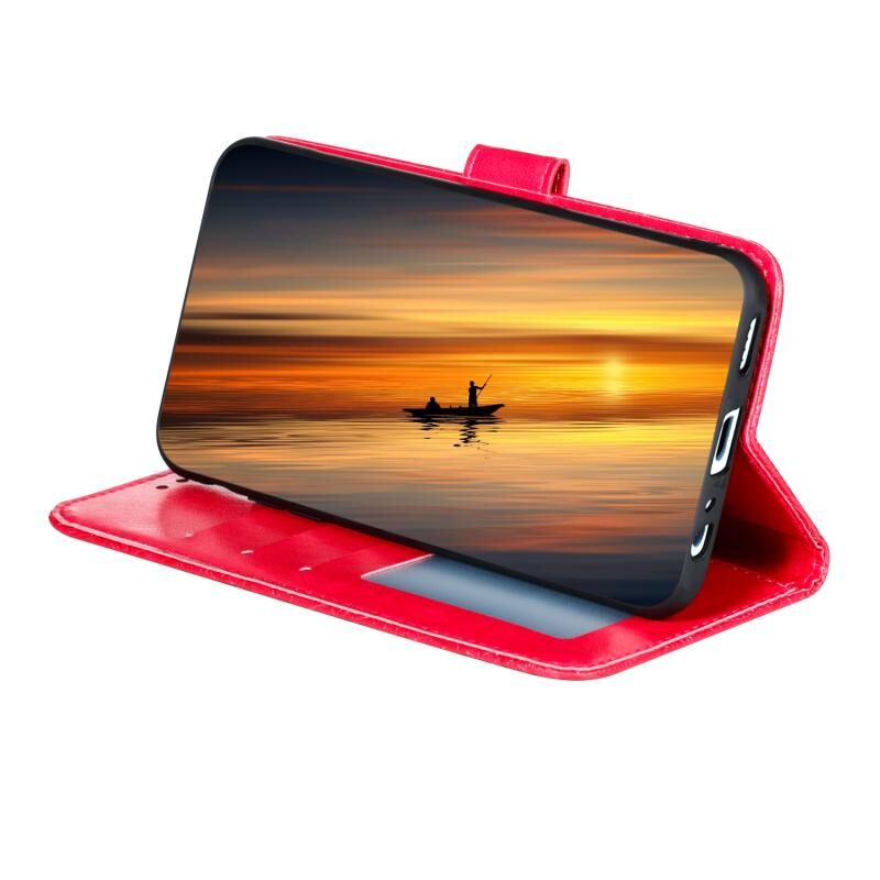 Για Samsung Galaxy S21 FE Lace λουλούδι ανάγλυφο μοτίβο οριζόντια Flip δερμάτινη θήκη με θήκη & υποδοχές για κάρτες & πορτοφόλι & κορνίζα φωτογραφιών (Κόκκινο)