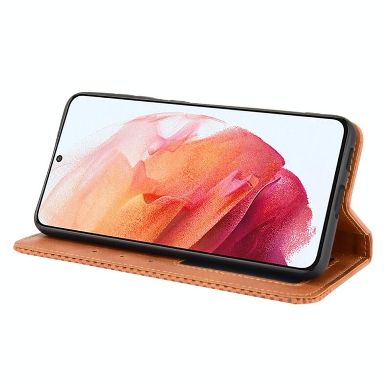 Για Samsung Galaxy S21 FE Μαγνητική πόρπη Ρετρό τρελό άλογο υφή οριζόντια Flip δερμάτινη θήκη με θήκη & υποδοχές για κάρτες & πλαίσιο φωτογραφιών (καφέ)