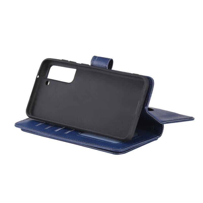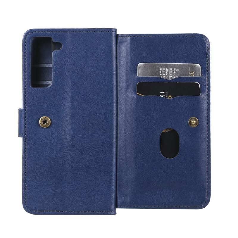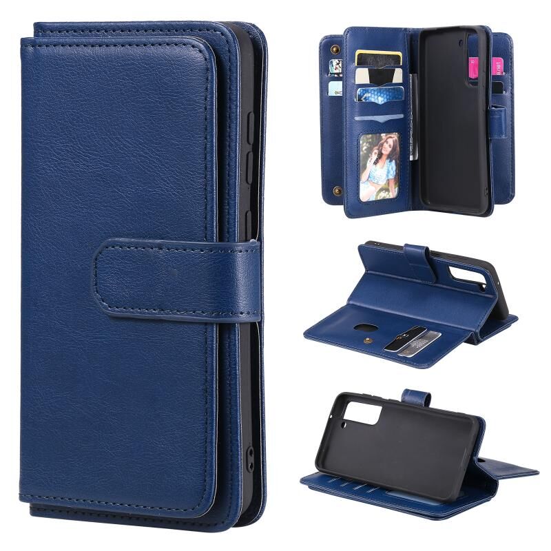 Για Samsung Galaxy S21 FE Πολυλειτουργική μαγνητική χάλκινη πόρπη οριζόντια Flip αμιγούς χρώματος δερμάτινη θήκη με 10 υποδοχές για κάρτες & πορτοφόλι & θήκη & κορνίζα φωτογραφιών (Σκούρο μπλε)