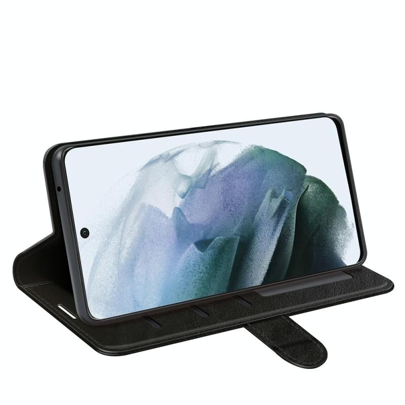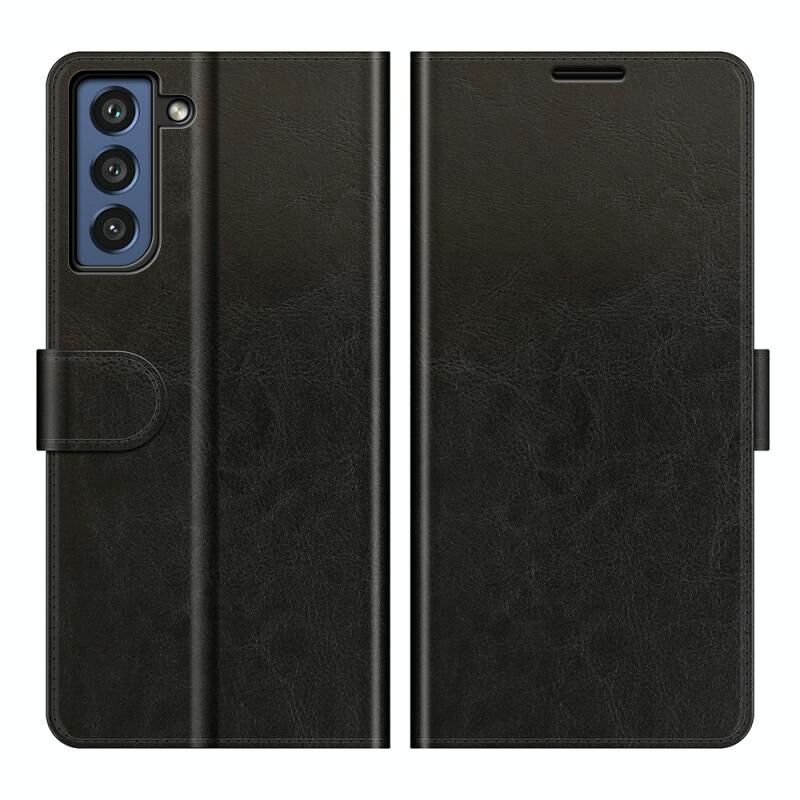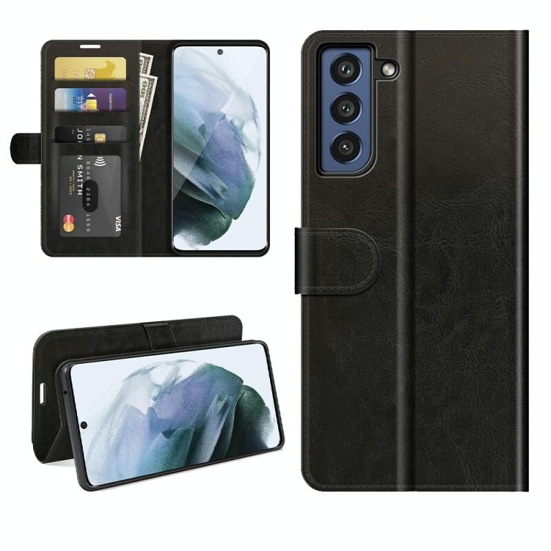 Θήκη προστασίας Samsung Galaxy S21 FE R64 με υφή, οριζόντιο άνοιγμα, βάση στήριξης, θήκες για κάρτες, πορτοφόλι & κορνίζα φωτογραφιών (Μαύρο)