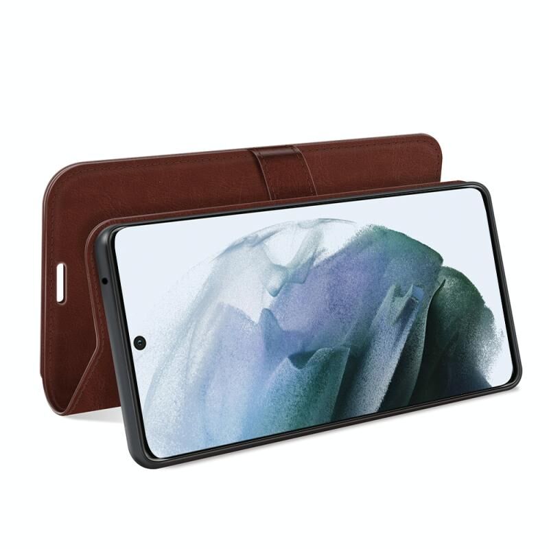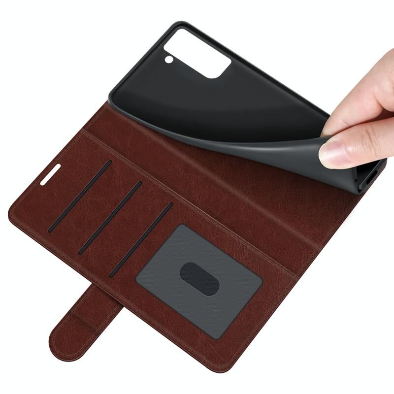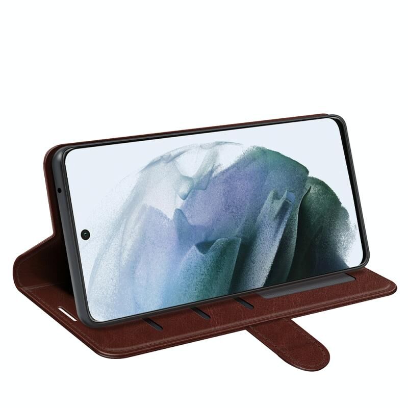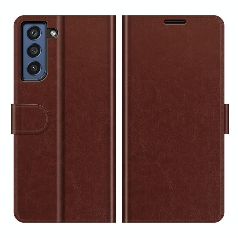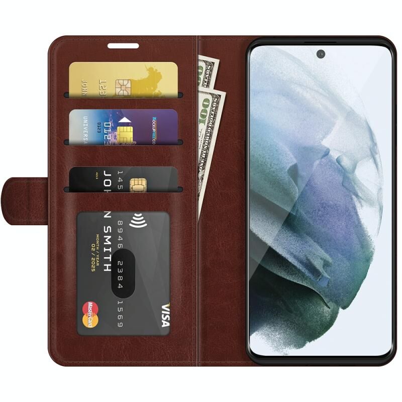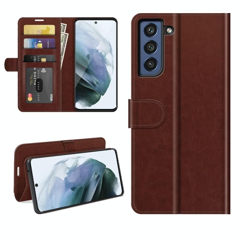 Θήκη προστασίας Samsung Galaxy S21 FE R64 με υφή, οριζόντιο άνοιγμα, βάση στήριξης, θήκες για κάρτες, πορτοφόλι & κορνίζα φωτογραφιών (Καφέ)