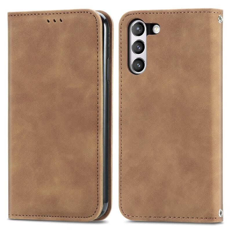 Για Samsung Galaxy S21 FE Retro Skin Feel Business μαγνητική οριζόντια Flip δερμάτινη θήκη με υποδοχές για κάρτες & πορτοφόλι & πλαίσιο φωτογραφιών (Καφέ)