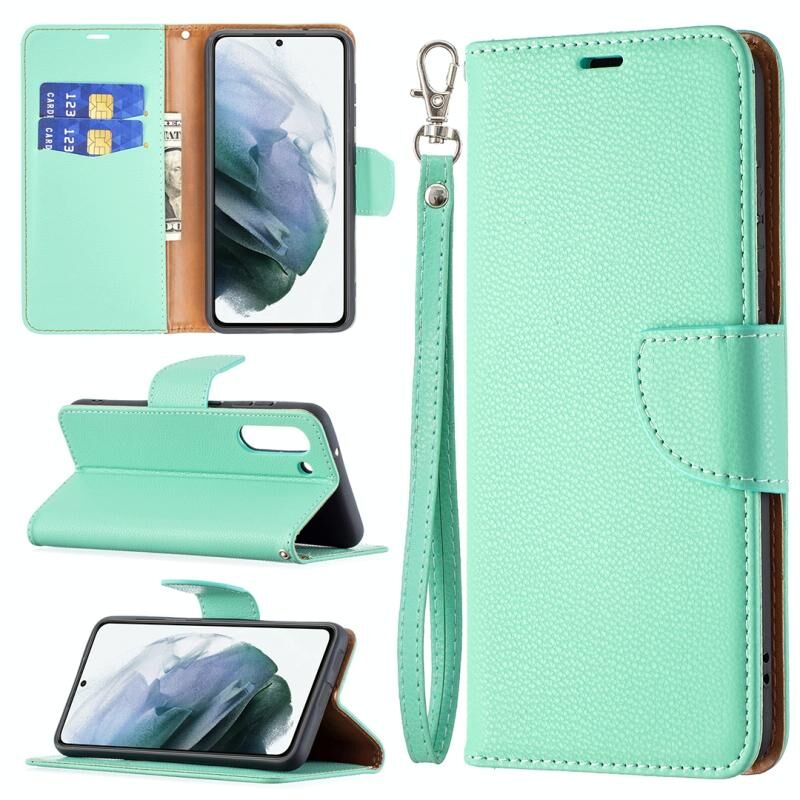 Για Samsung Galaxy S21 FE / S21 Lite Litchi υφή καθαρό χρώμα οριζόντια Flip δερμάτινη θήκη με θήκη & υποδοχές για κάρτες & πορτοφόλι & κορδόνι (πράσινο)