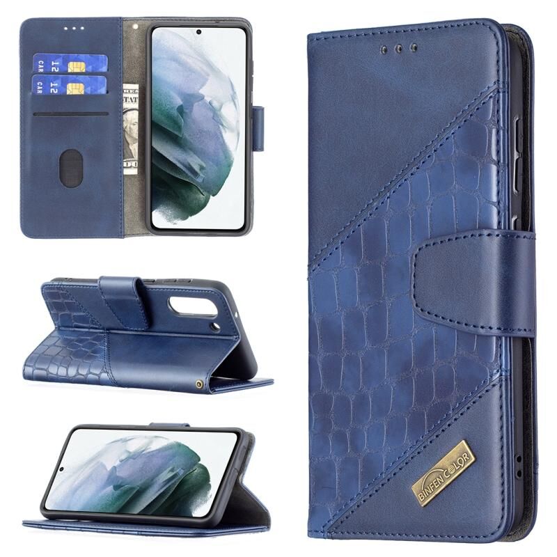 Θήκη οριζόντιας αναδίπλωσης από δερματίνη PU με υφή κροκόδειλου, σε ταιριαστό χρώμα για Samsung Galaxy S21 FE / S21 Lite, με πορτοφόλι, βάση & θήκες για κάρτες (Μαύρο)