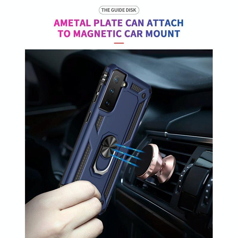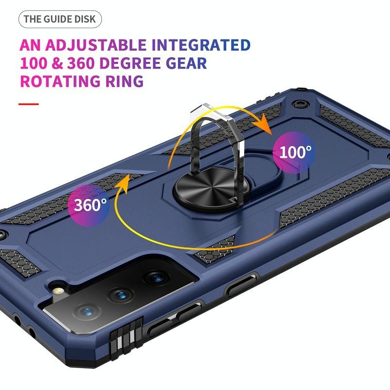 For Samsung Galaxy S21 FE Shockproof TPU + PC Protective Case with 360 Degree Rotating Holder(Blue)