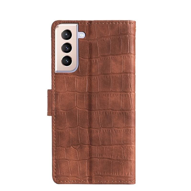 Θήκη Samsung Galaxy S21 FE με υφή δέρματος κροκόδειλου, μαγνητικό κούμπωμα, οριζόντια, από δερματίνη PU με βάση & θήκες για κάρτες & πορτοφόλι (Μαύρο)