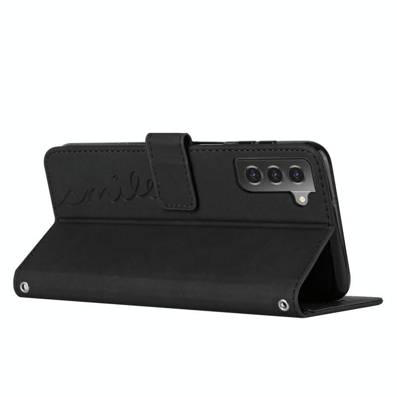 Για Samsung Galaxy S21 FE δέρμα αίσθηση καρδιά μοτίβο δερμάτινη θήκη τηλεφώνου (μαύρο)