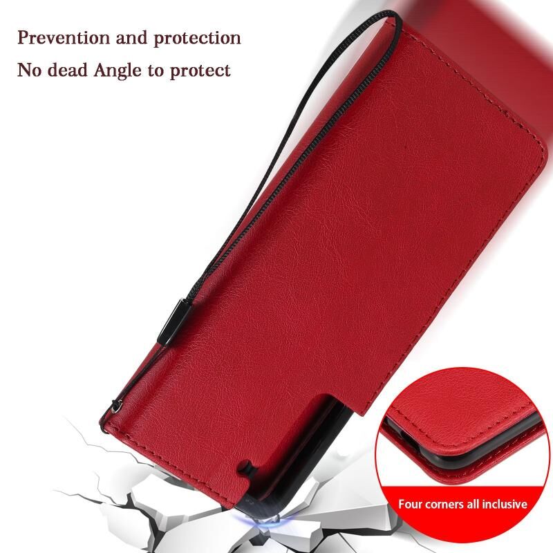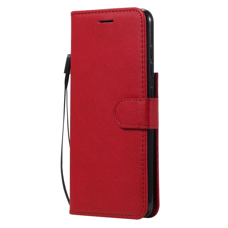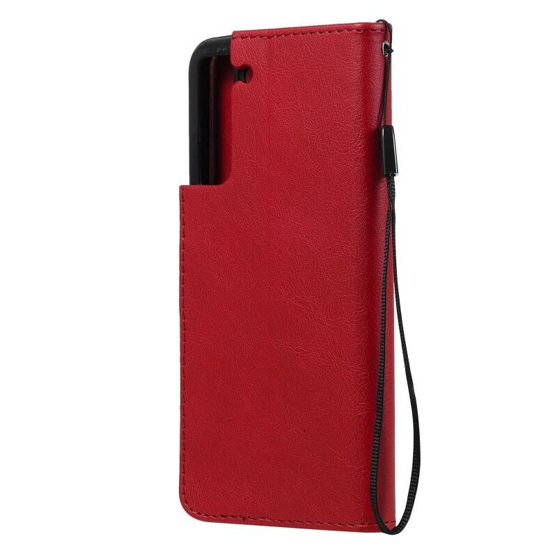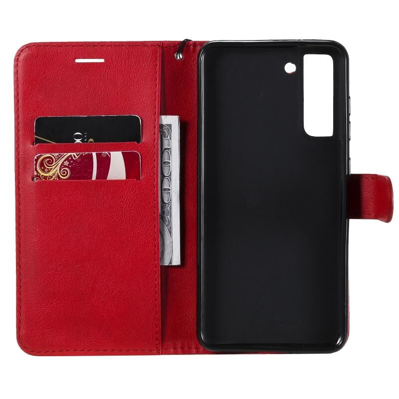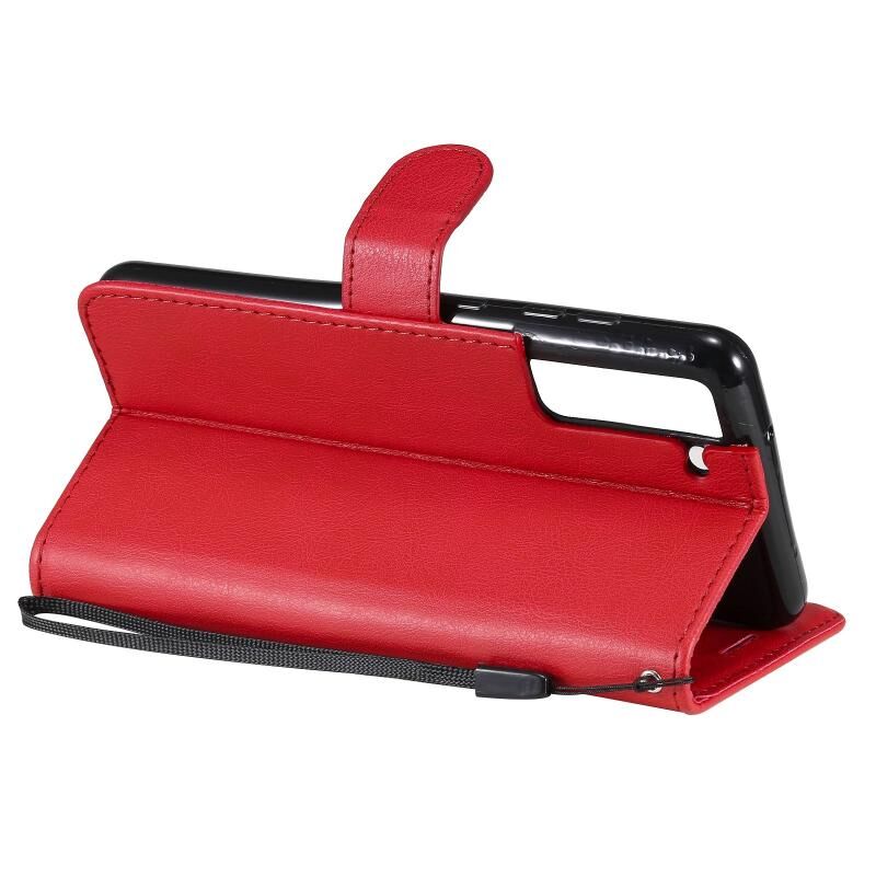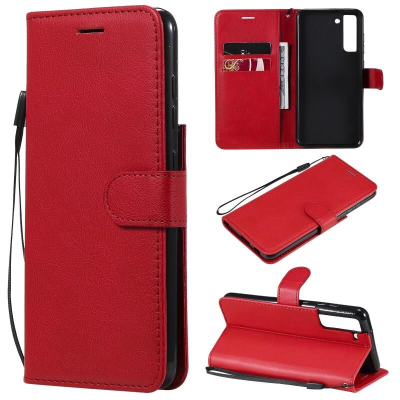Για Samsung Galaxy S21 FE Αμιγές χρώμα οριζόντια Flip προστατευτική δερμάτινη θήκη με θήκη & υποδοχές για κάρτες & πορτοφόλι & κορνίζα & κορδόνι (Κόκκινο)