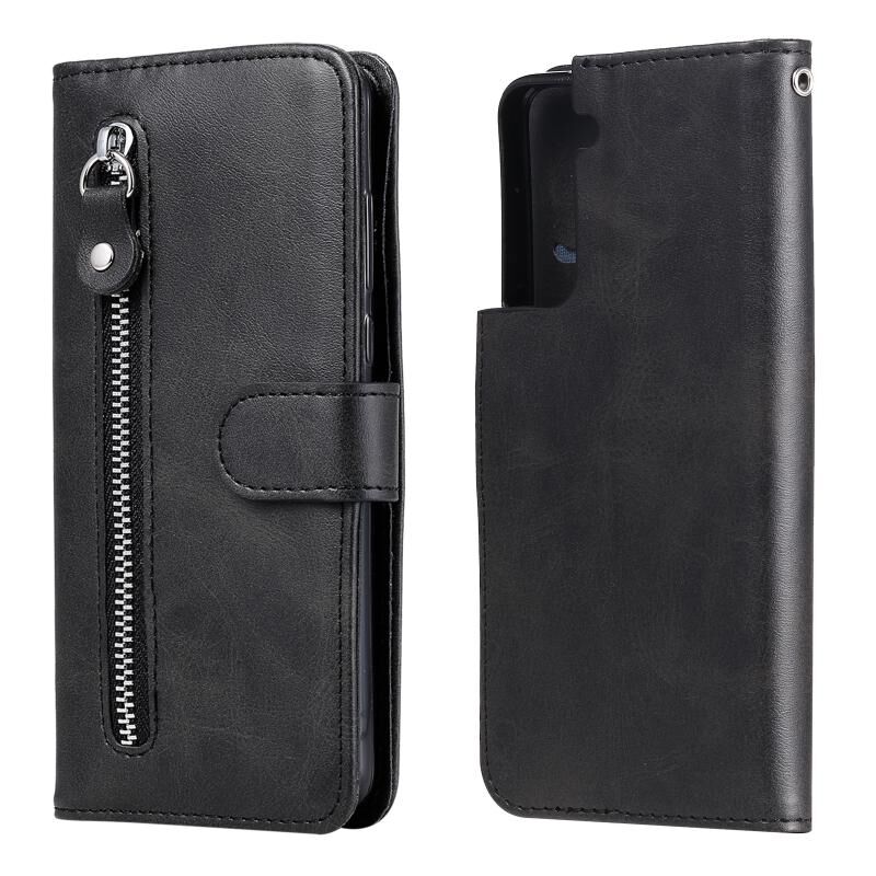 Για Samsung Galaxy S21 Plus 5G μόδας μοσχάρι υφή φερμουάρ οριζόντια Flip δερμάτινη θήκη με θήκη & υποδοχές για κάρτες & πορτοφόλι (μαύρο)
