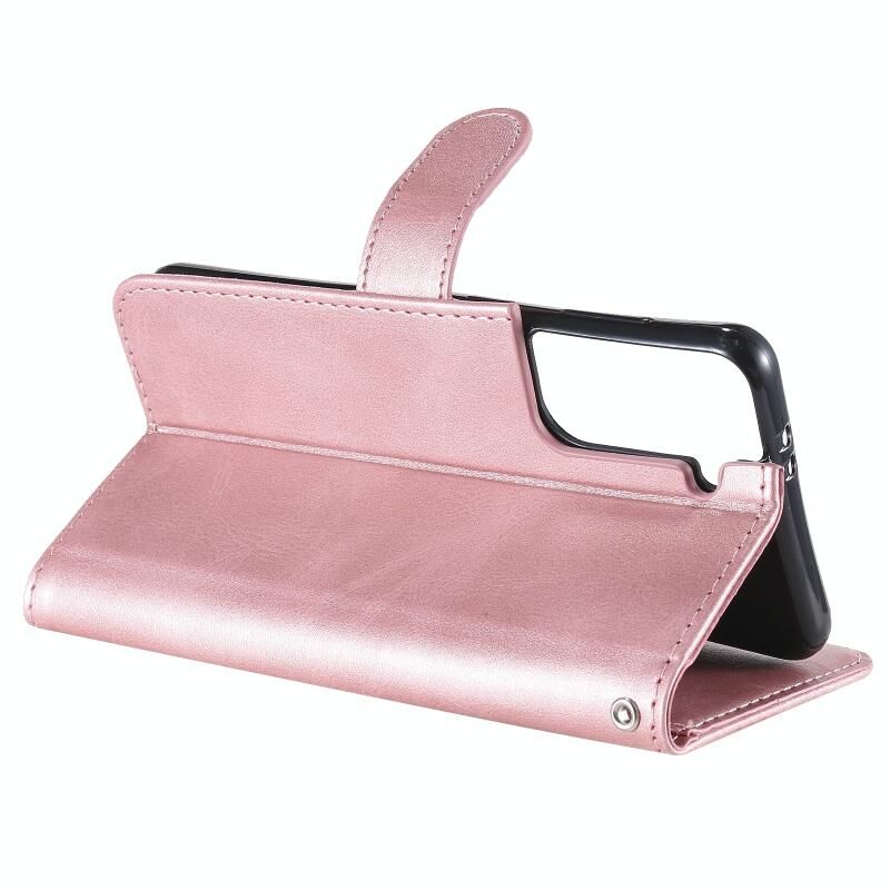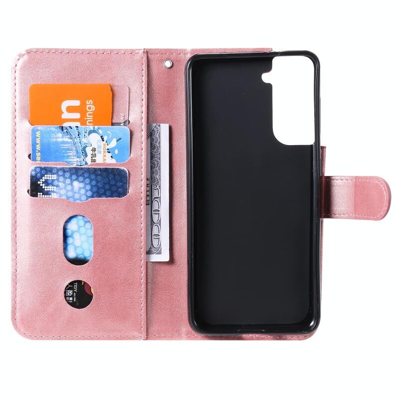 Για Samsung Galaxy S21 Plus 5G μόδας μοσχάρι υφή φερμουάρ οριζόντια Flip δερμάτινη θήκη με θήκη & υποδοχές για κάρτες & πορτοφόλι (Rose Gold)