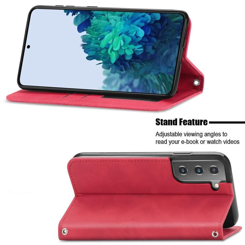 Για Samsung Galaxy S21 Plus Ρετρό δέρμα Feel Business μαγνητική οριζόντια Flip δερμάτινη θήκη με κάτοχο & υποδοχές για κάρτες & πορτοφόλι & κορνίζα φωτογραφιών (κόκκινο)