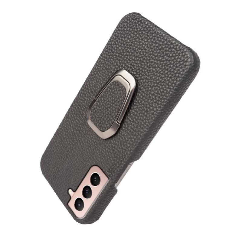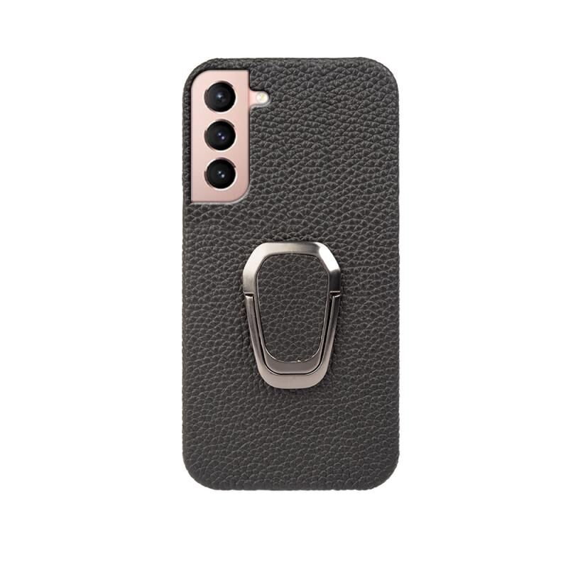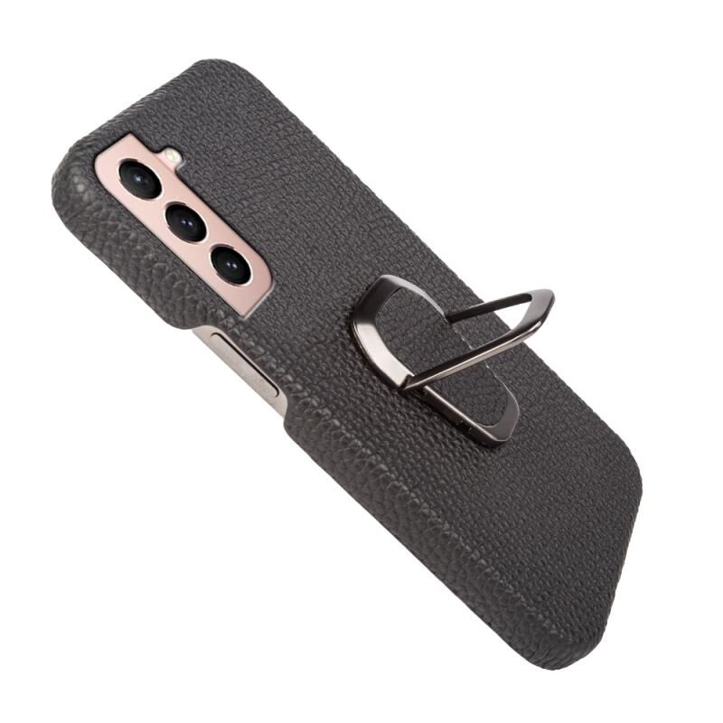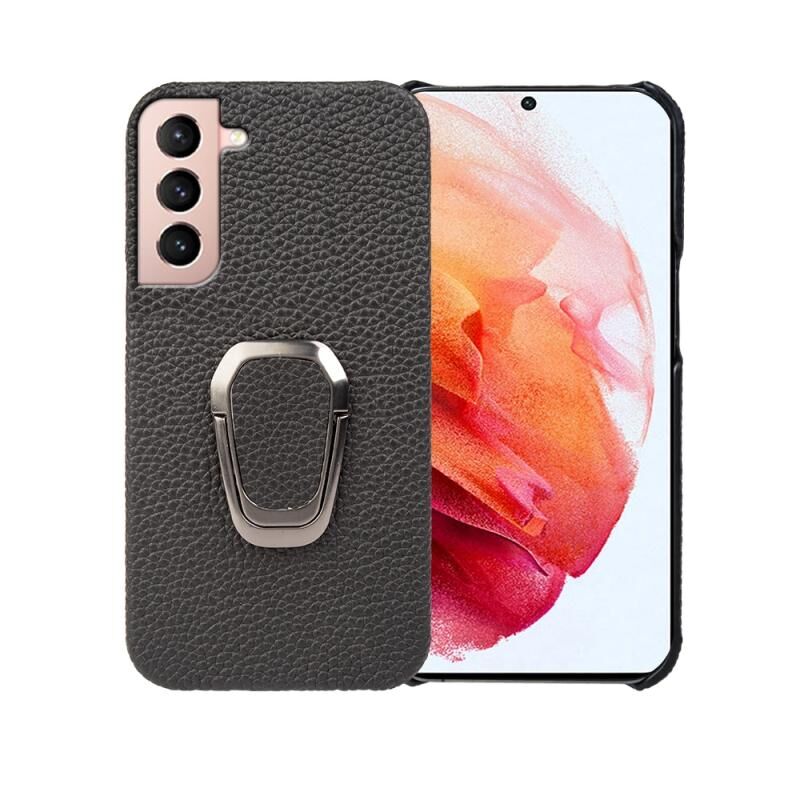 For Samsung Galaxy S21 Ring Holder Litchi Texture Genuine Leather Phone Case(Black)