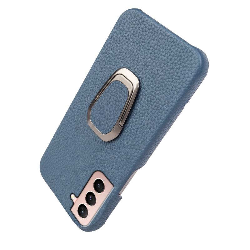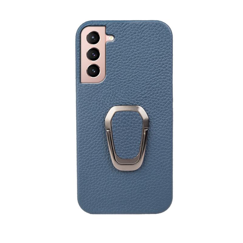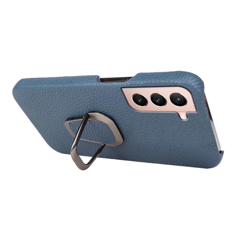 For Samsung Galaxy S21 Ring Holder Litchi Texture Genuine Leather Phone Case(Blue)