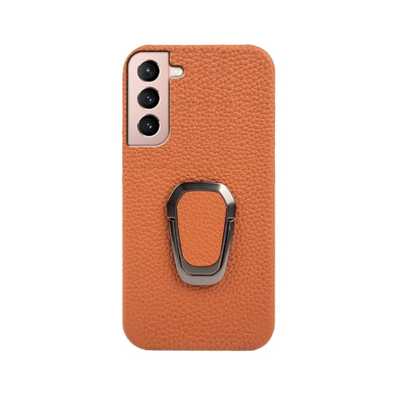For Samsung Galaxy S21 Ring Holder Litchi Texture Genuine Leather Phone Case(Brown)