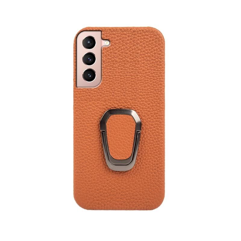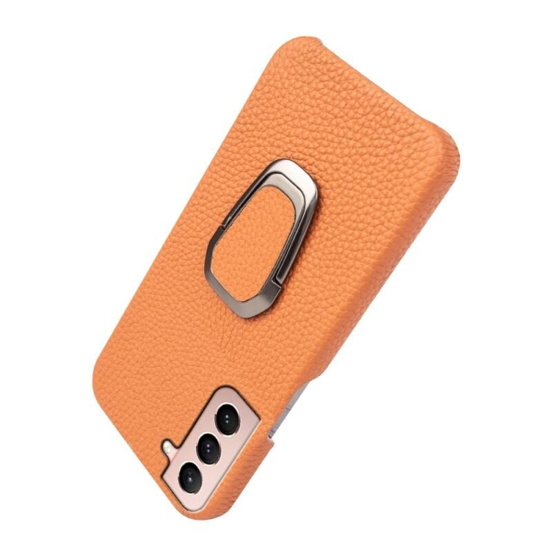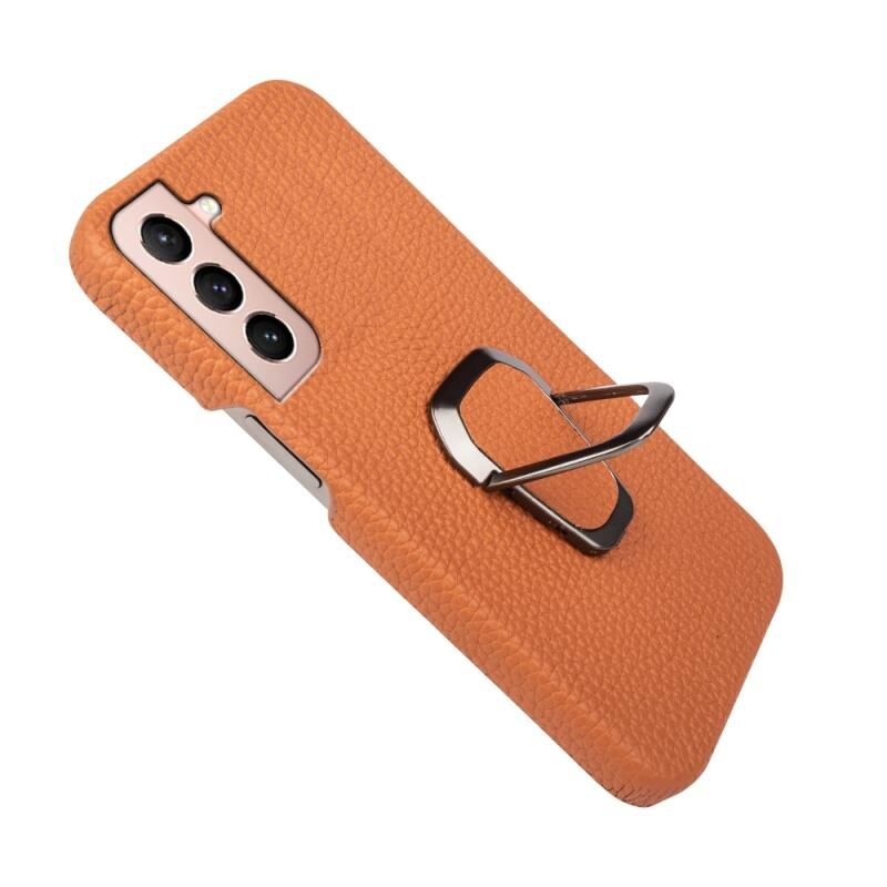 Θήκη κινητού Samsung Galaxy S21 με δακτύλιο και γνήσιο δέρμα υφής λύτσι (Κόκκινο)