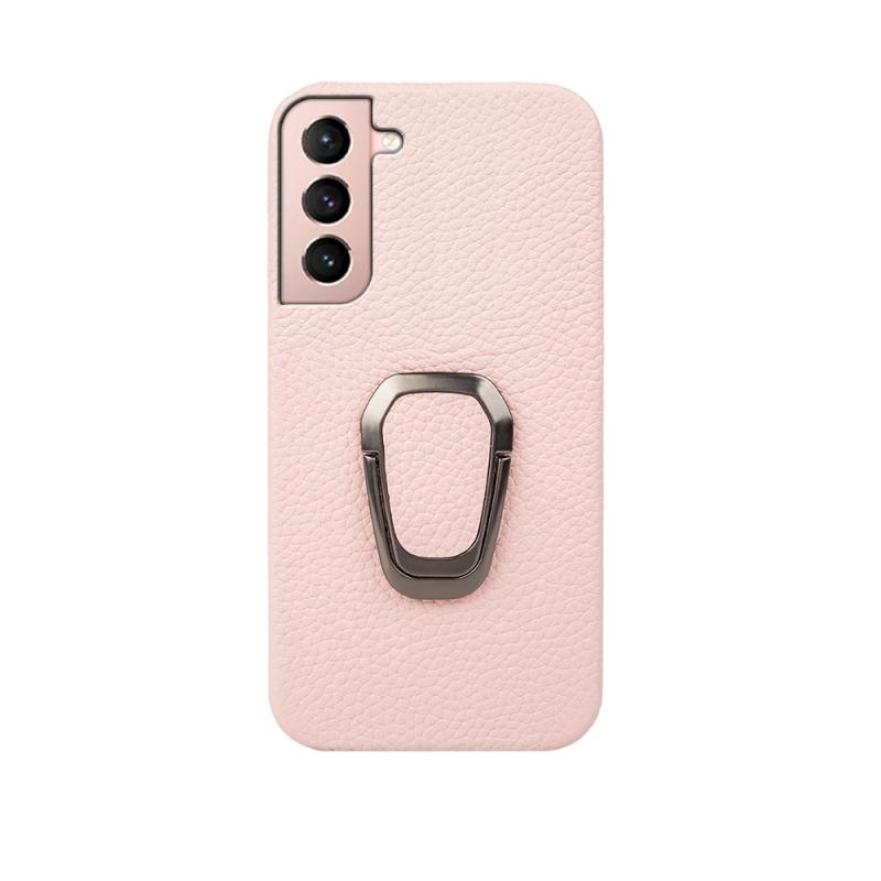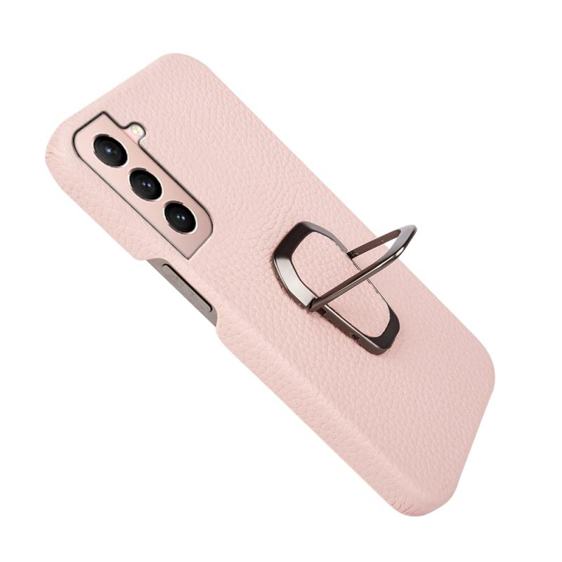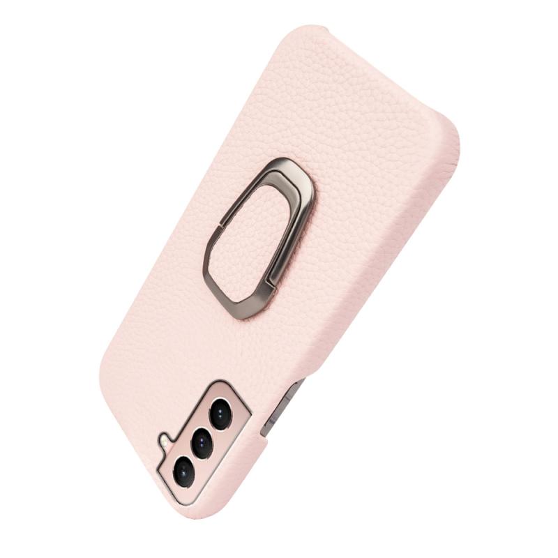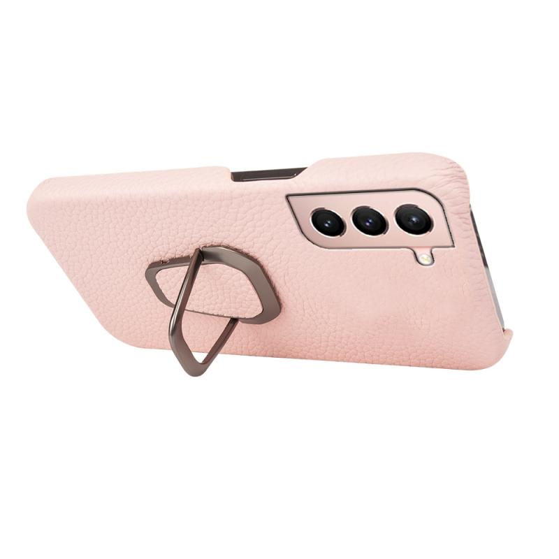 For Samsung Galaxy S21 Ring Holder Litchi Texture Genuine Leather Phone Case(Pink)