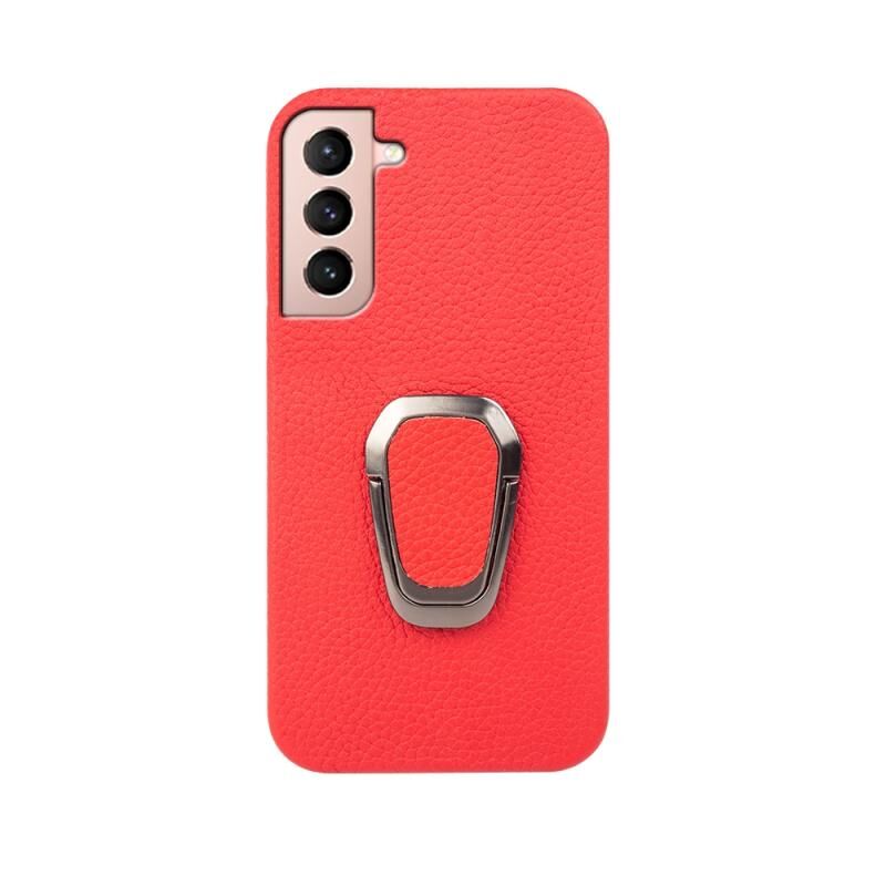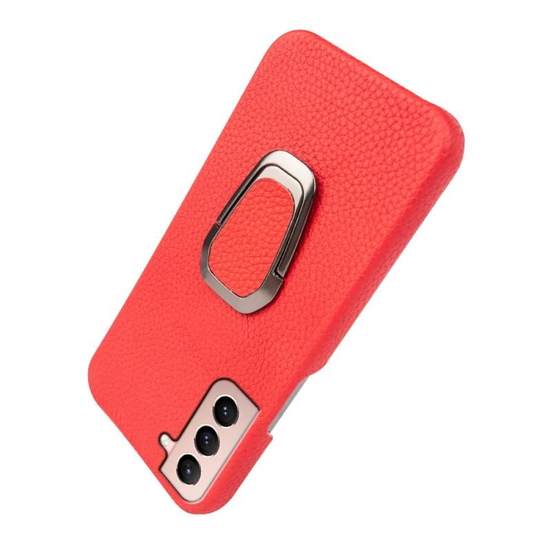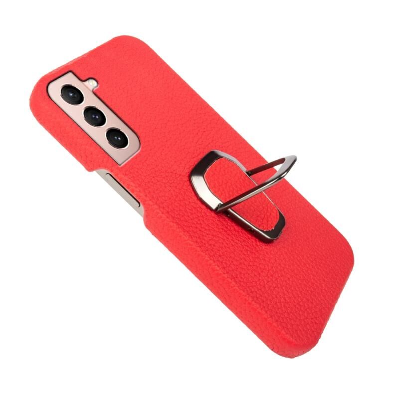Θήκη κινητού Samsung Galaxy S21 με δακτύλιο και γνήσιο δέρμα υφής λύτσι (Κόκκινο)
