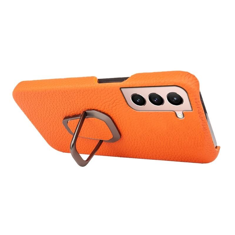 For Samsung Galaxy S21 Ring Holder Litchi Texture Genuine Leather Phone Case(Yellow)
