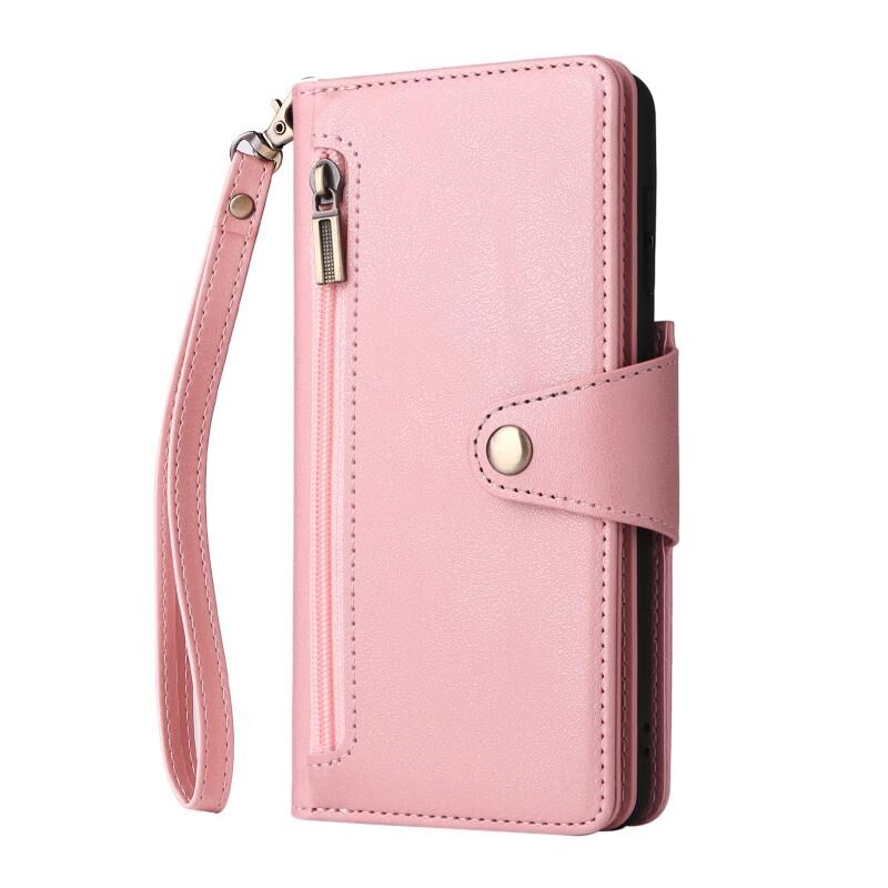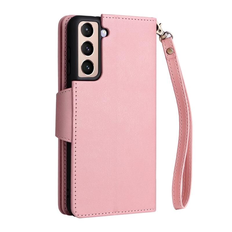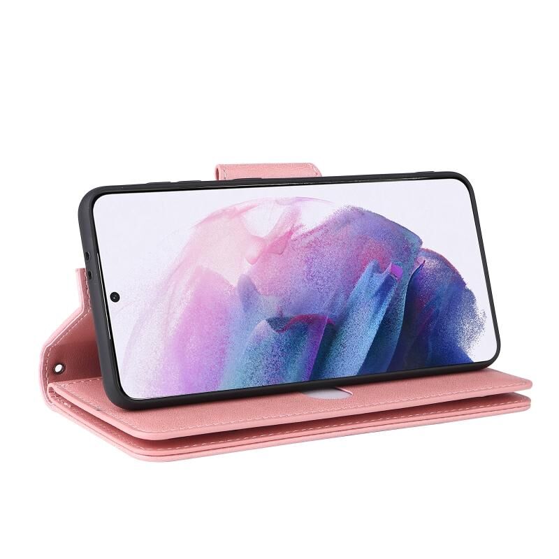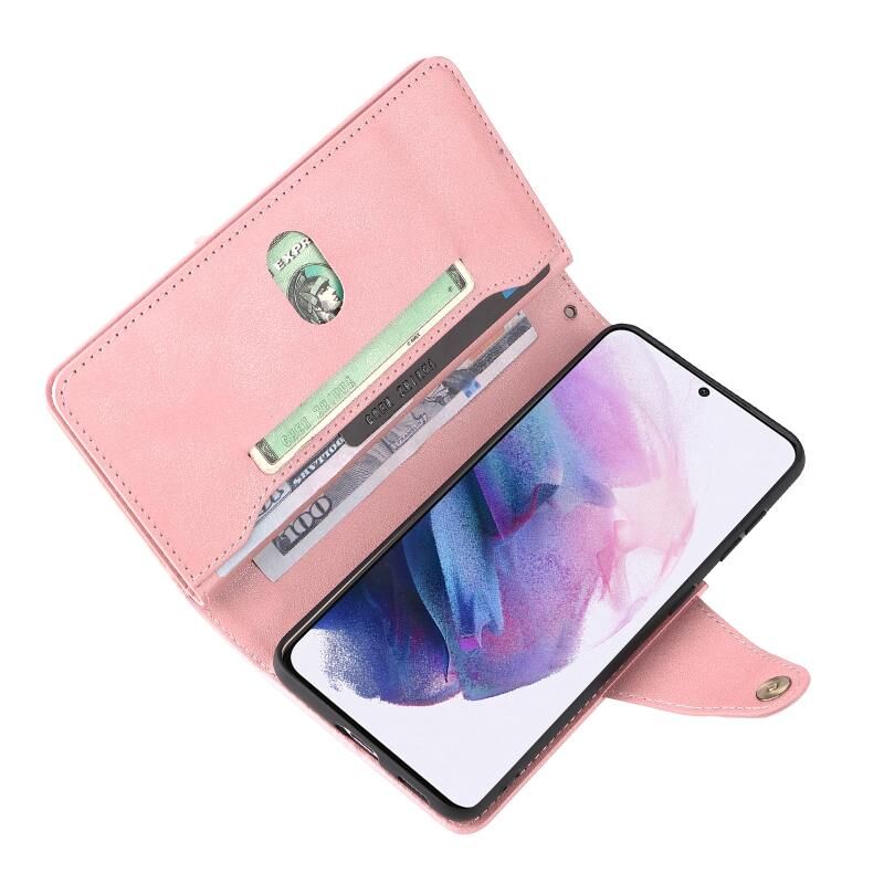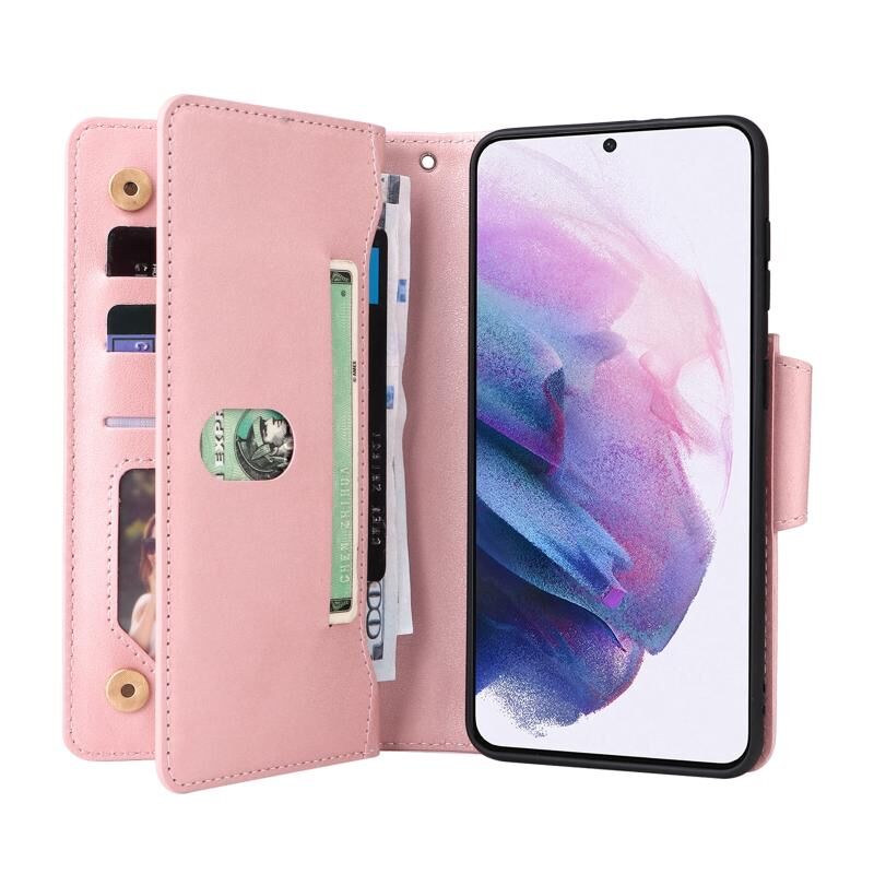 Για Samsung Galaxy S21+ Rivet πόρπη 9 κάρτες τρεις φορές δερμάτινη θήκη τηλεφώνου (ροζ χρυσό)