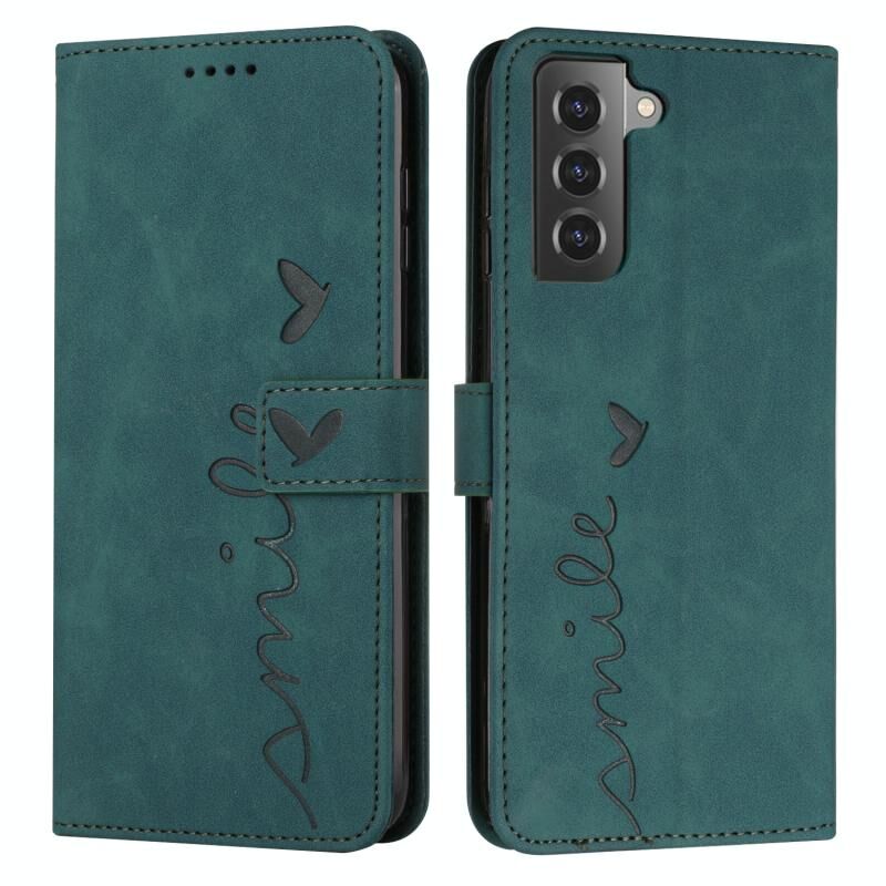 Για Samsung Galaxy S21 δέρμα αίσθηση καρδιά μοτίβο δερμάτινη θήκη τηλεφώνου (πράσινο)