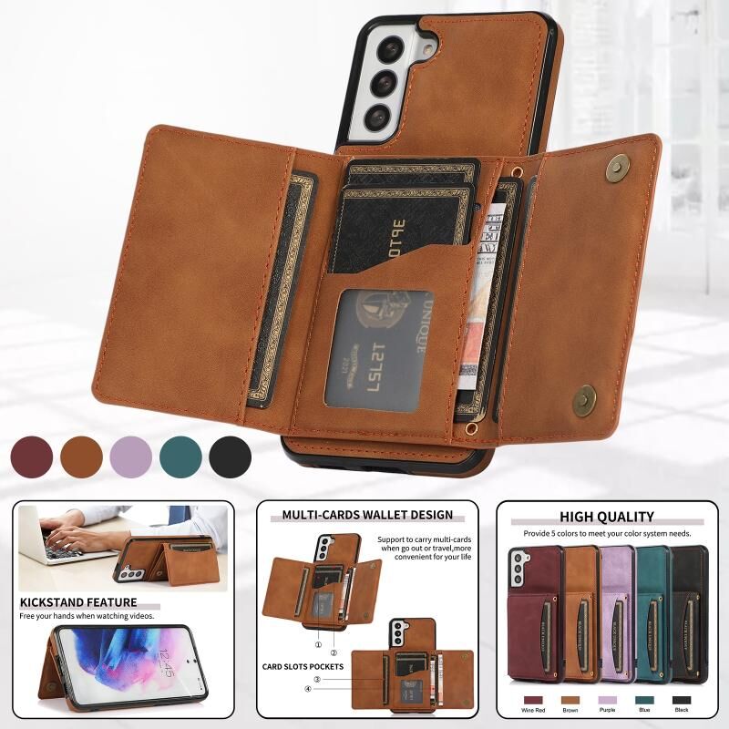 Για Samsung Galaxy S21+ Τρεις-πτυχή δερμάτινη θήκη τηλεφώνου με υποδοχή για κάρτες & πορτοφόλι & θήκη (καφέ)