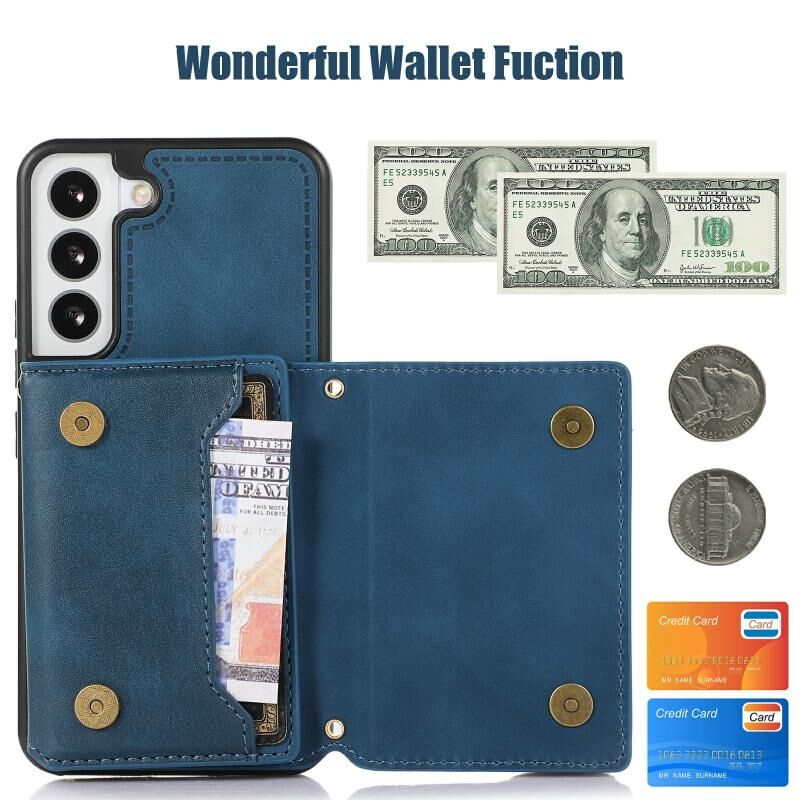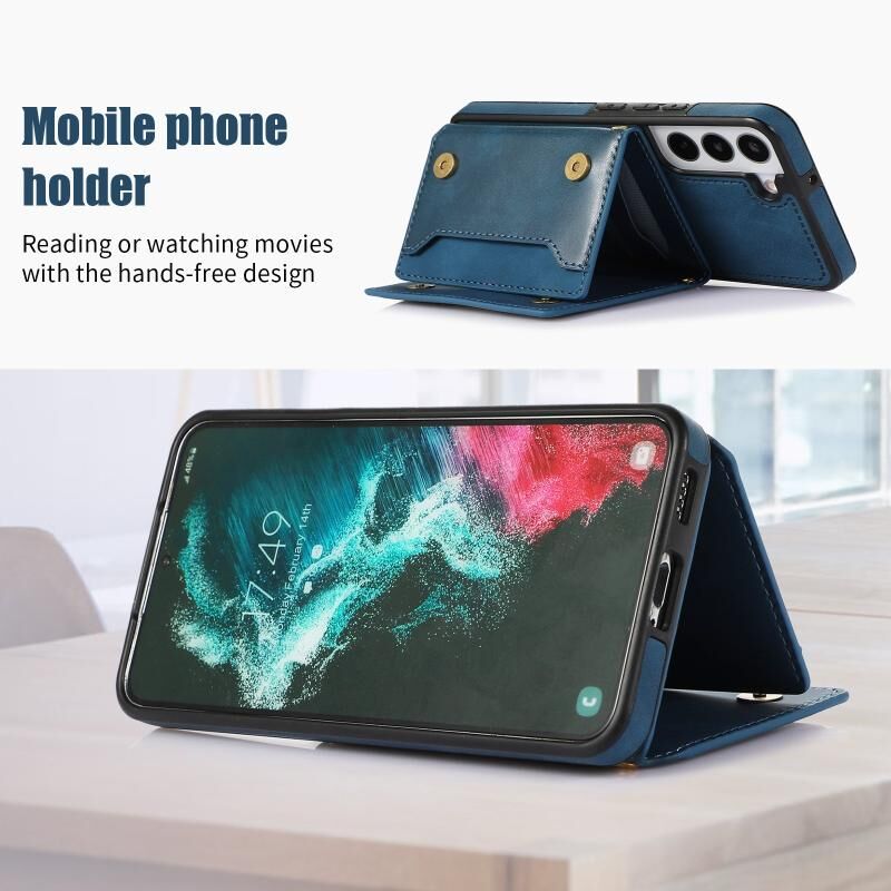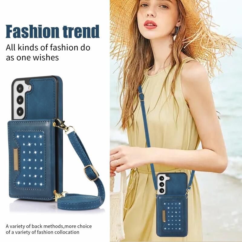 Για Samsung Galaxy S21 Τρεις φορές RFID δερμάτινη θήκη τηλεφώνου με κορδόνι (μπλε)