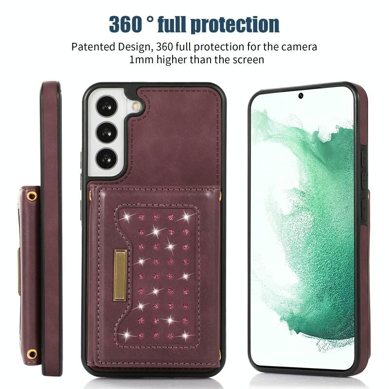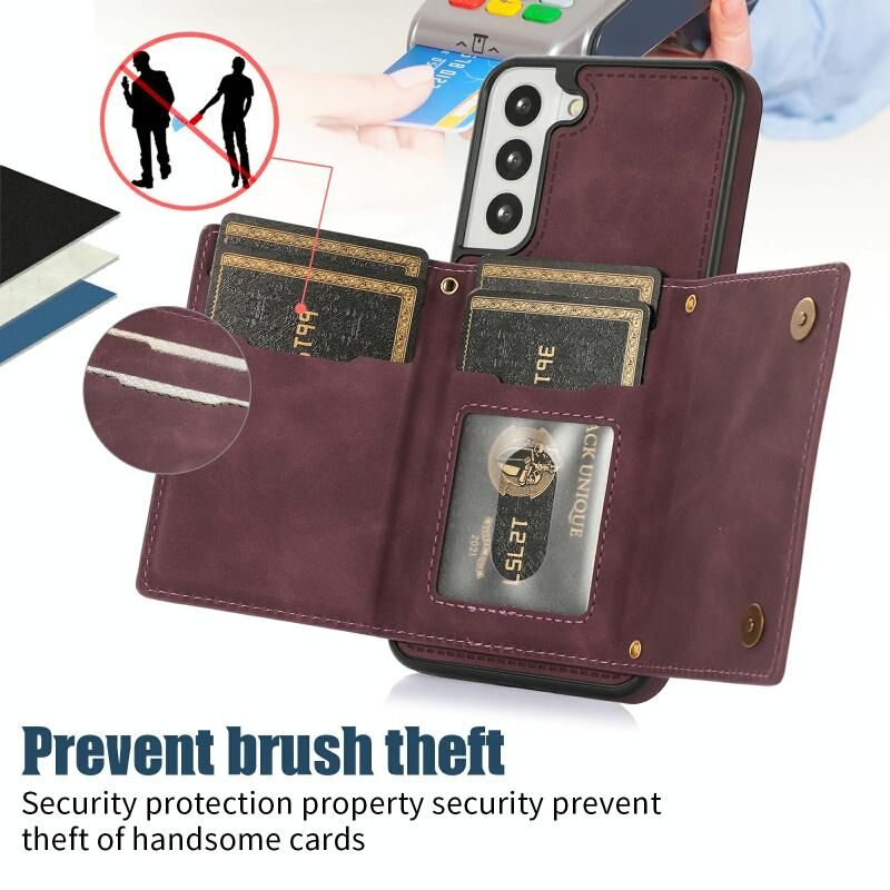 Για Samsung Galaxy S21+ Τρεις φορές RFID δερμάτινη θήκη τηλεφώνου με κορδόνι (κόκκινο)
