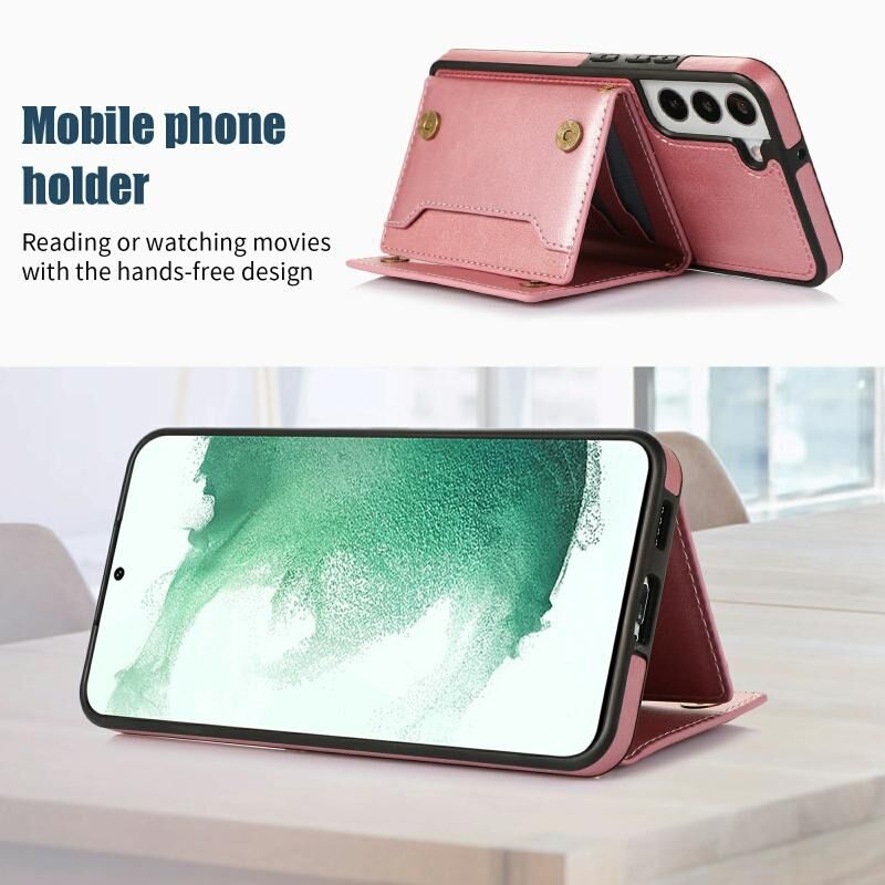 Για Samsung Galaxy S21+ Τρεις φορές RFID δερμάτινη θήκη τηλεφώνου με κορδόνι (ροζ χρυσό)