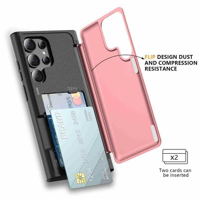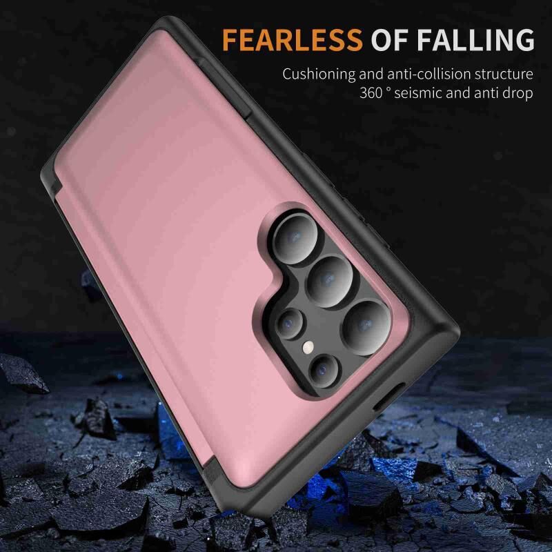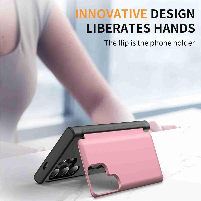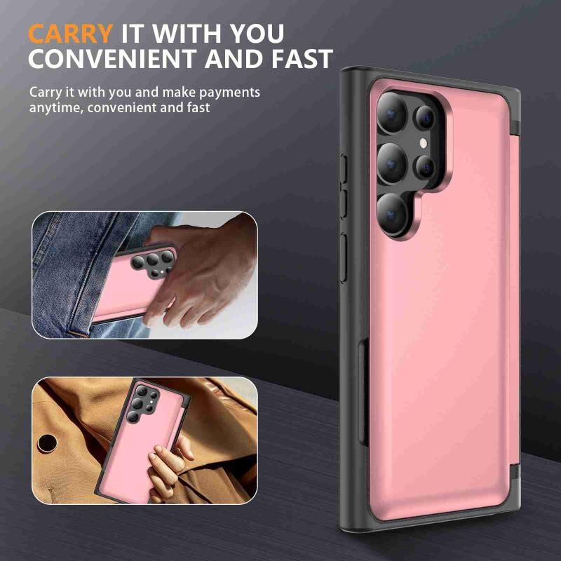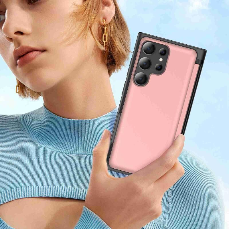 Για Samsung Galaxy S21 Ultra 5G 3 σε 1 Flip θήκη τηλεφώνου κάτοχος (ροζ)
