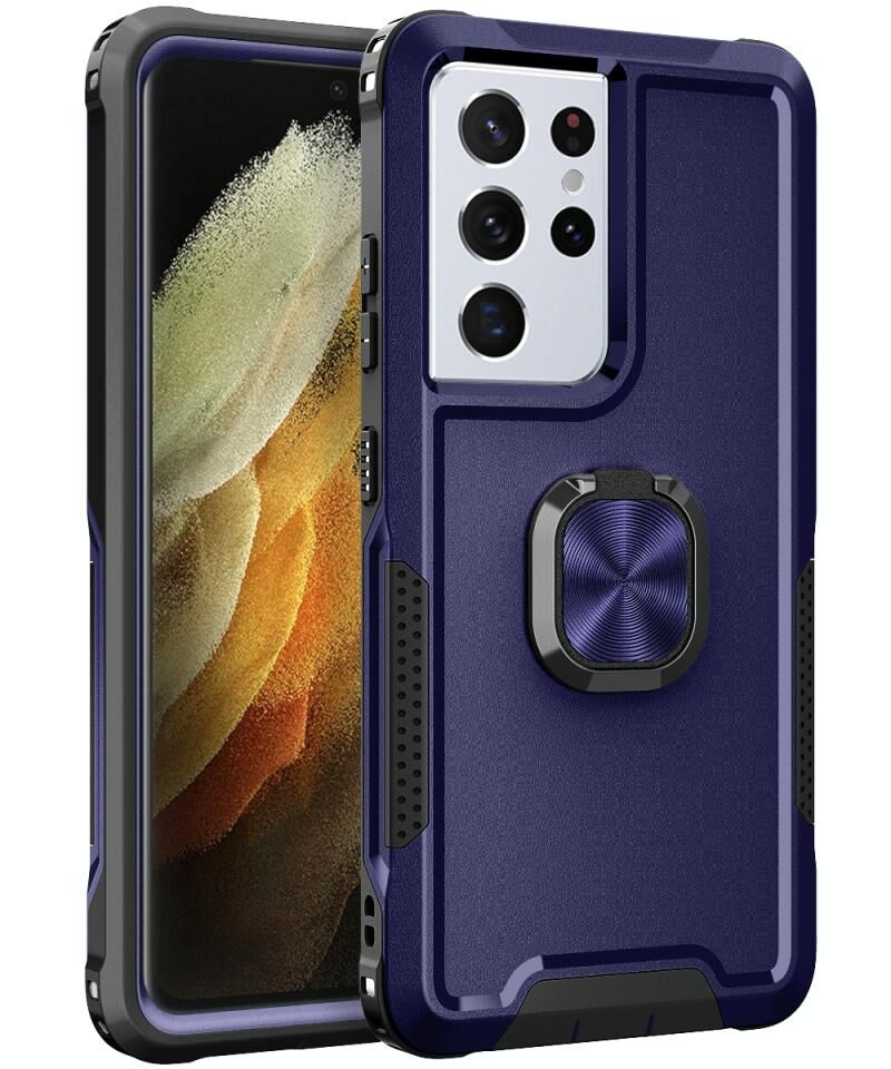Για Samsung Galaxy S21 Ultra 5G 3 σε 1 PC + TPU υπόθεση τηλεφώνου με θήκη δαχτυλίδι (Ναυτικό μπλε)