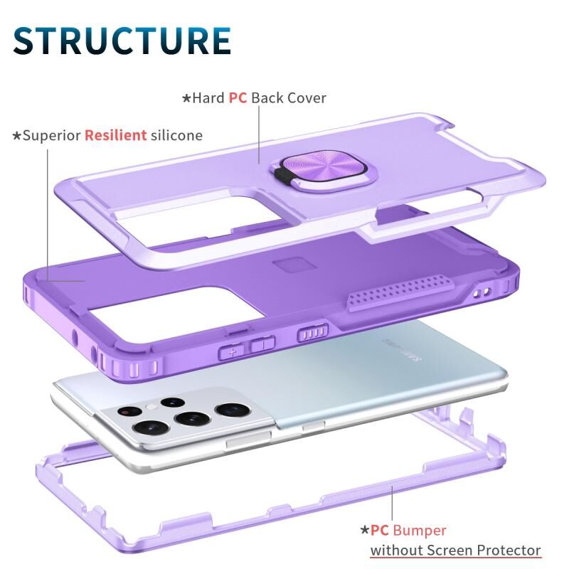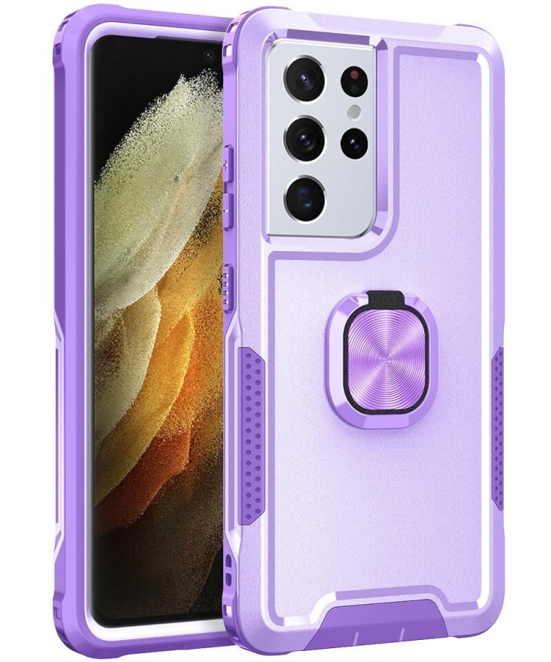 Για Samsung Galaxy S21 Ultra 5G 3 σε 1 PC + TPU υπόθεση τηλεφώνου με θήκη δαχτυλίδι (μωβ)