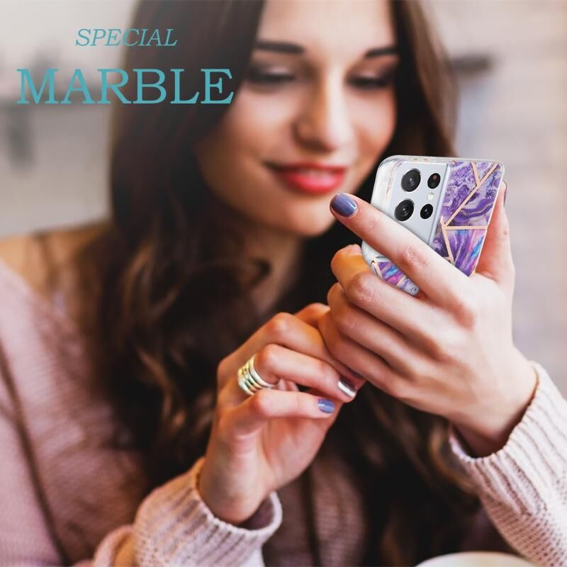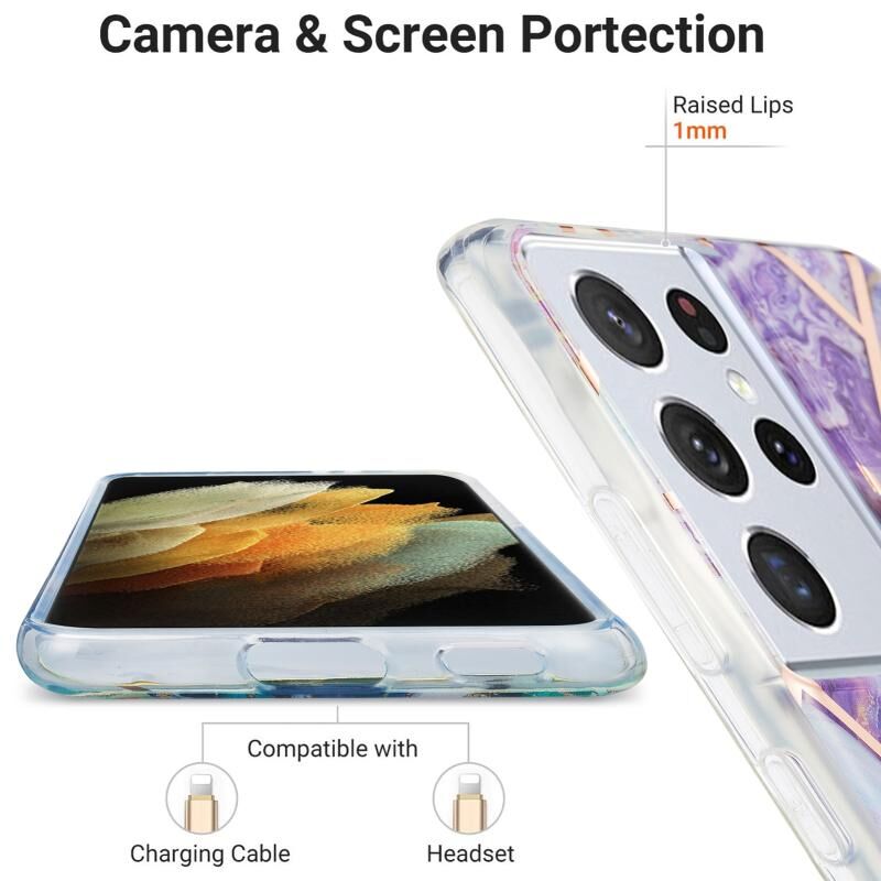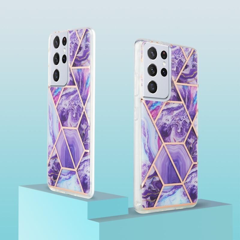 Θήκη προστασίας TPU με μοτίβο μαρμάρου και ηλεκτρολυτική επικάλυψη 3D για Samsung Galaxy S21 Ultra 5G (Μπλε)