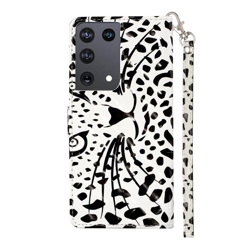 Θήκη δέρματος οριζόντιας αναδίπλωσης 3D με σχέδιο για Samsung Galaxy S21 Ultra 5G με βάση, θήκες καρτών, πορτοφόλι & λουρί (Κεφάλι Λεοπάρδαλη).