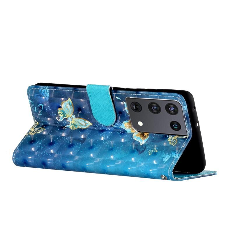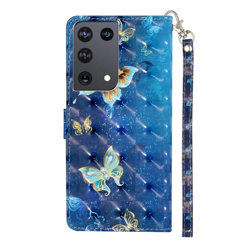 Θήκη δέρματος οριζόντιας αναδίπλωσης 3D με σχέδιο για Samsung Galaxy S21 Ultra 5G με βάση στήριξης & υποδοχές καρτών & πορτοφόλι & κορδόνι (Rankine Butterfly)