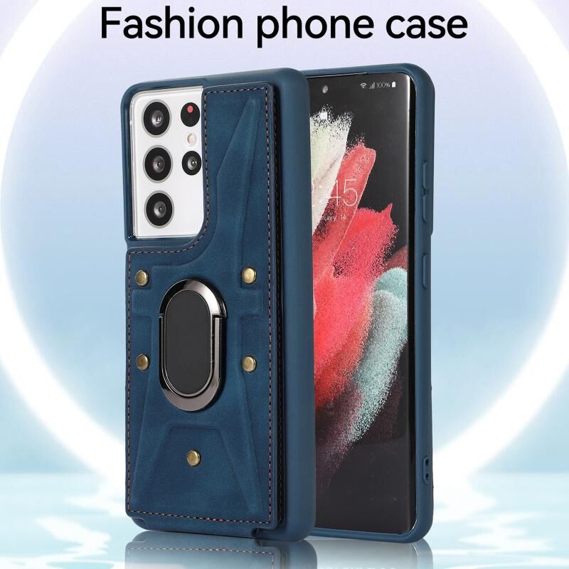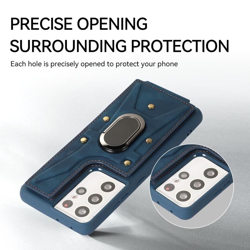 Για Samsung Galaxy S21 Ultra 5G θωράκιση δαχτυλίδι πορτοφόλι πίσω κάλυμμα τηλεφώνου υπόθεση (μπλε)