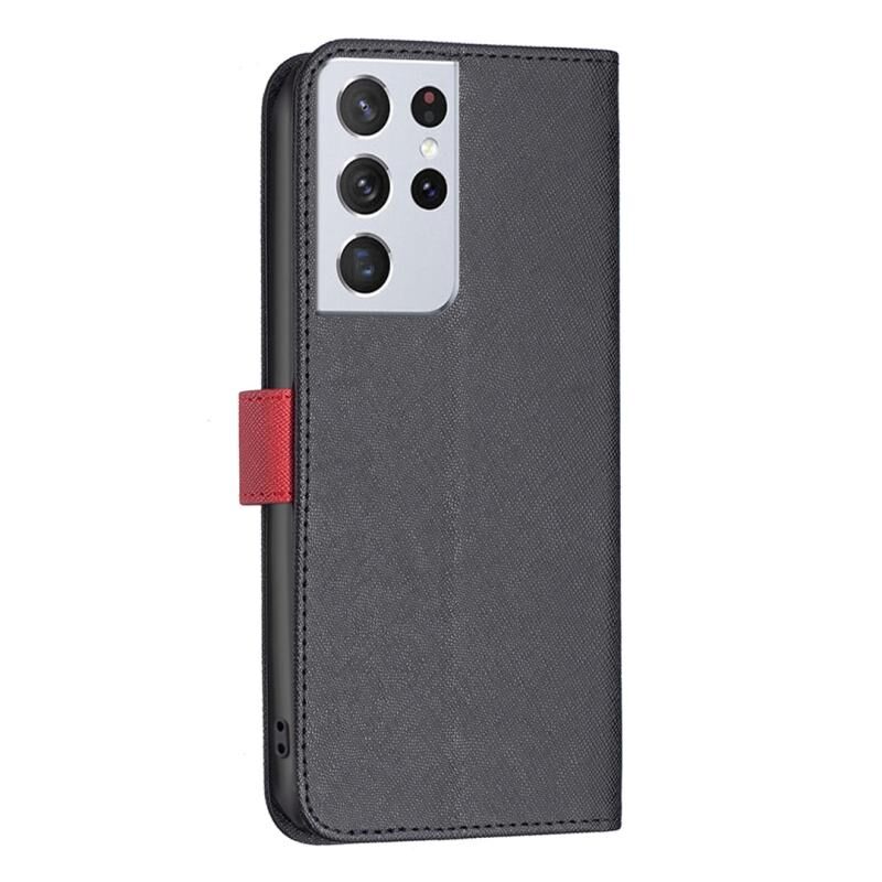 Για Samsung Galaxy S21 Ultra 5G BF13 χρώμα ταιριάζει με σταυρό υφή δερμάτινη θήκη τηλεφώνου (μαύρο)