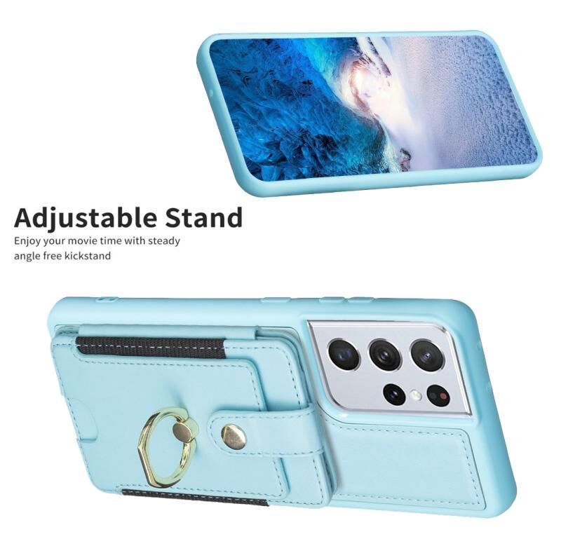 Για Samsung Galaxy S21 Ultra 5G BF27 Μεταλλικό δαχτυλίδι κάρτας τσάντα κάτοχος υπόθεση τηλεφώνου (μπλε)