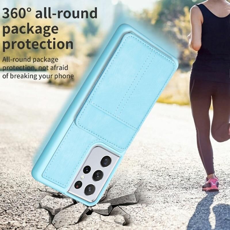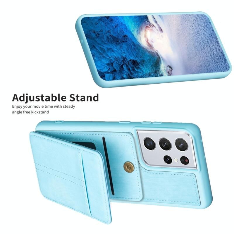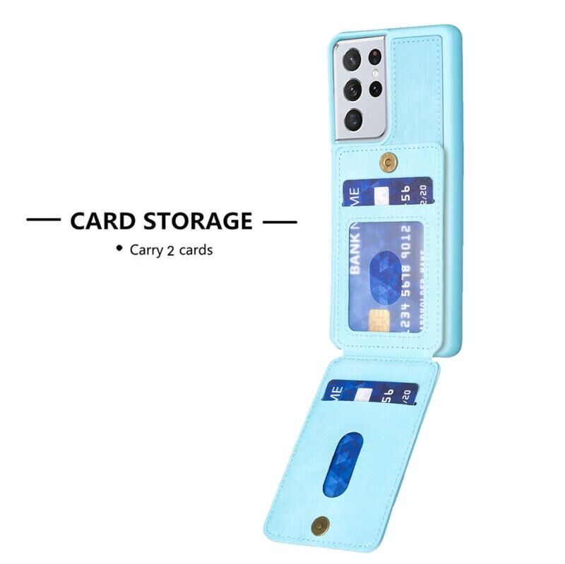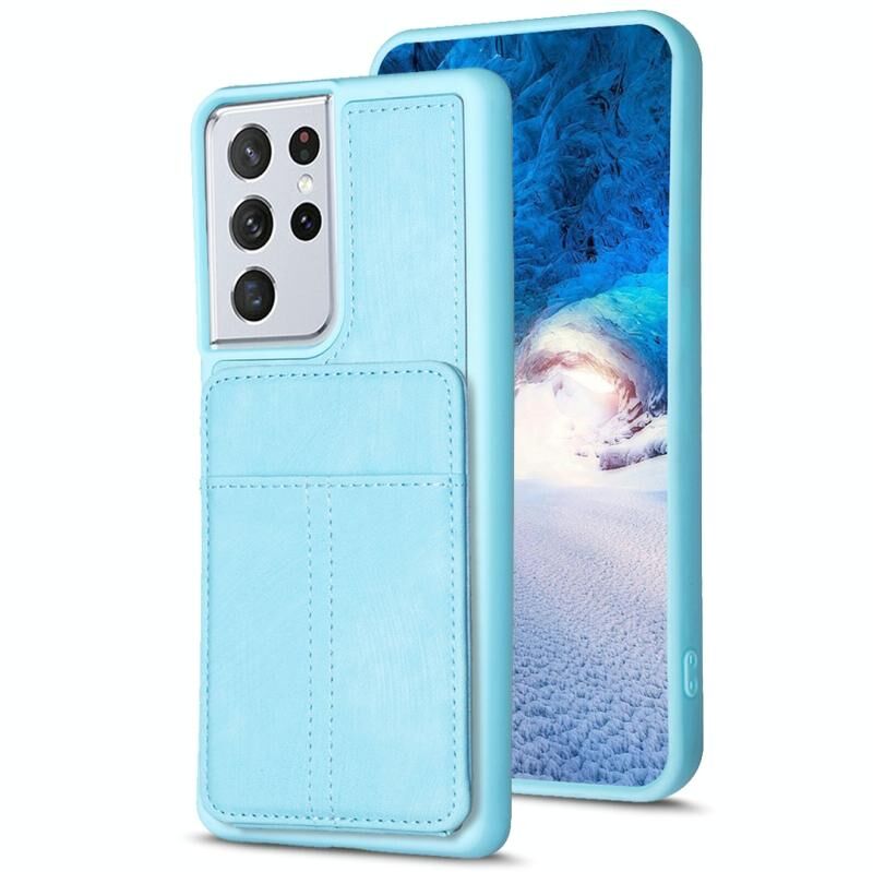 Για Samsung Galaxy S21 Ultra 5G BF28 παγωμένη τσάντα κάρτα υπόθεση τηλεφώνου με θήκη (μπλε)