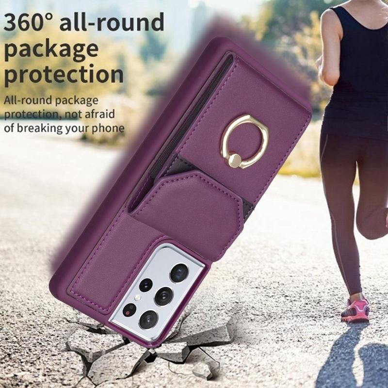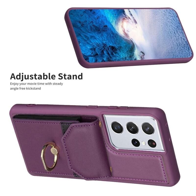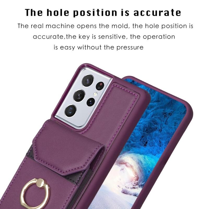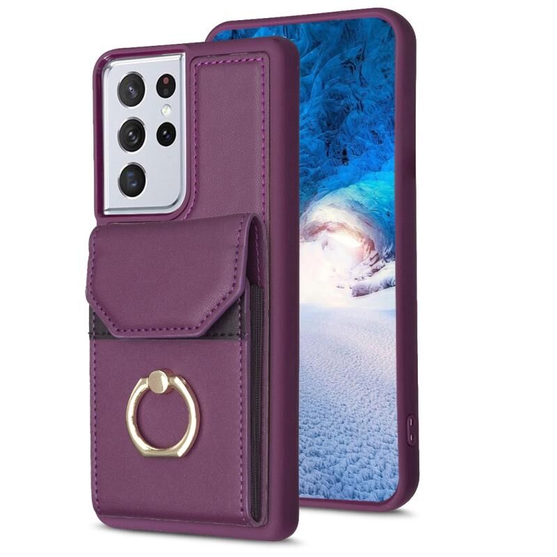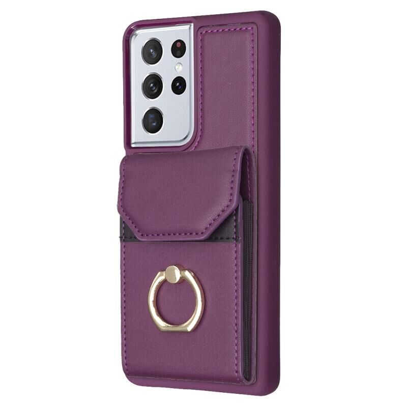 Για Samsung Galaxy S21 Ultra 5G BF29 Οργάνου κάρτα τσάντα δαχτυλίδι κάτοχος υπόθεση τηλεφώνου (σκούρο μωβ)