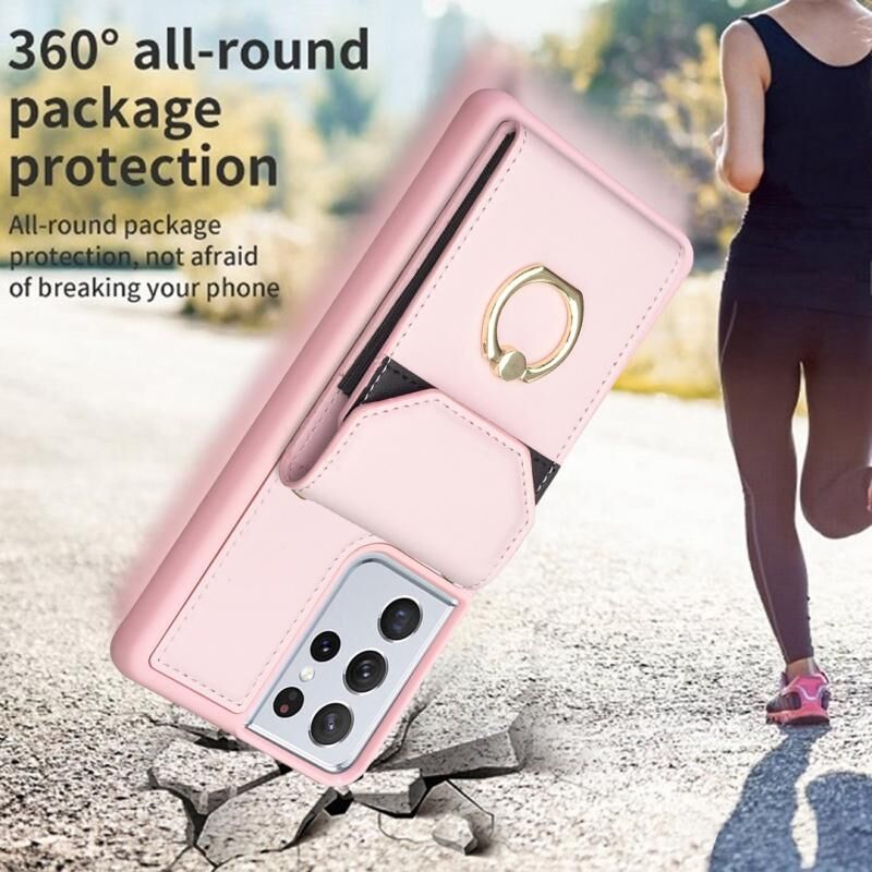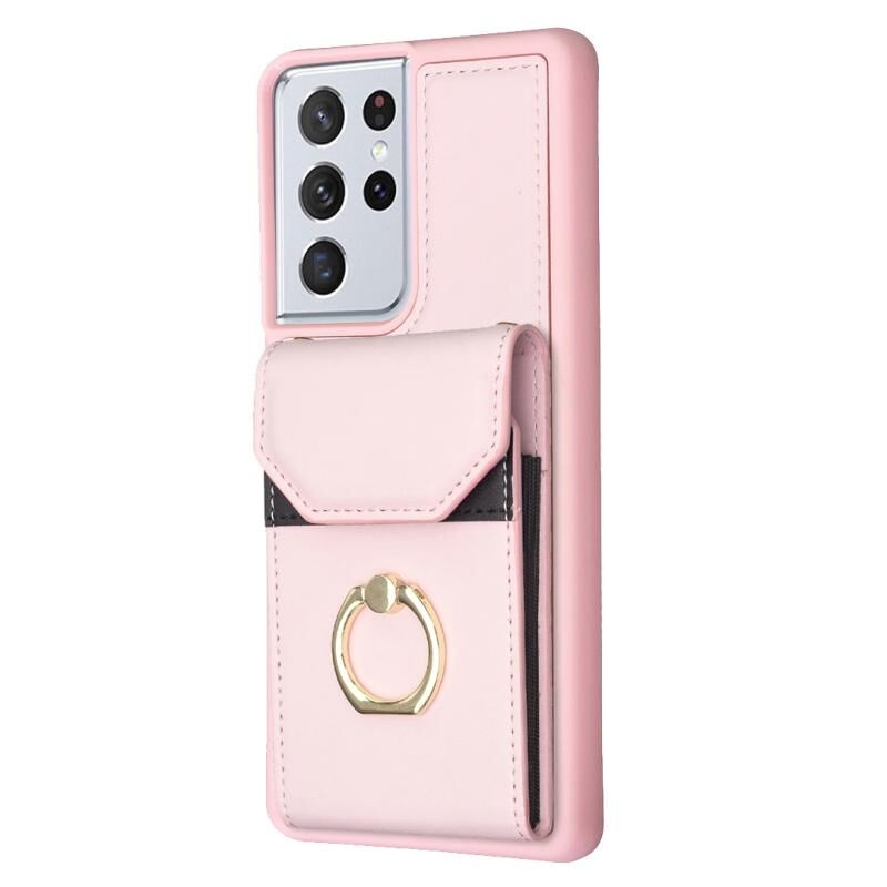 Για Samsung Galaxy S21 Ultra 5G BF29 Οργάνου κάρτα τσάντα δαχτυλίδι κάτοχος υπόθεση τηλεφώνου (ροζ)