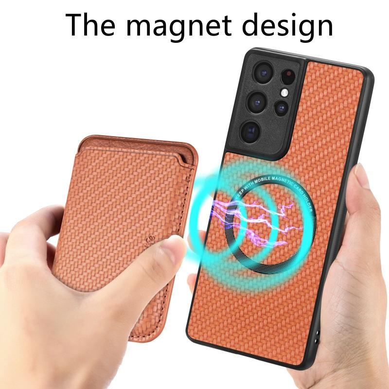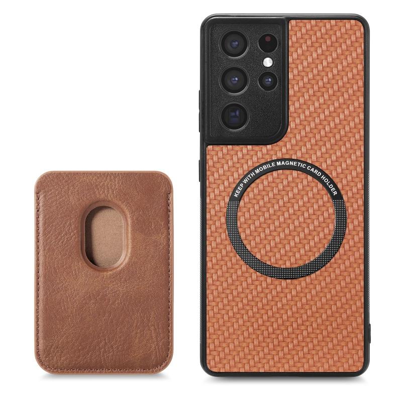 For Samsung Galaxy S21 Ultra 5G Carbon Fiber Leather Card Magsafe Magnetic Phone Case(Brown)