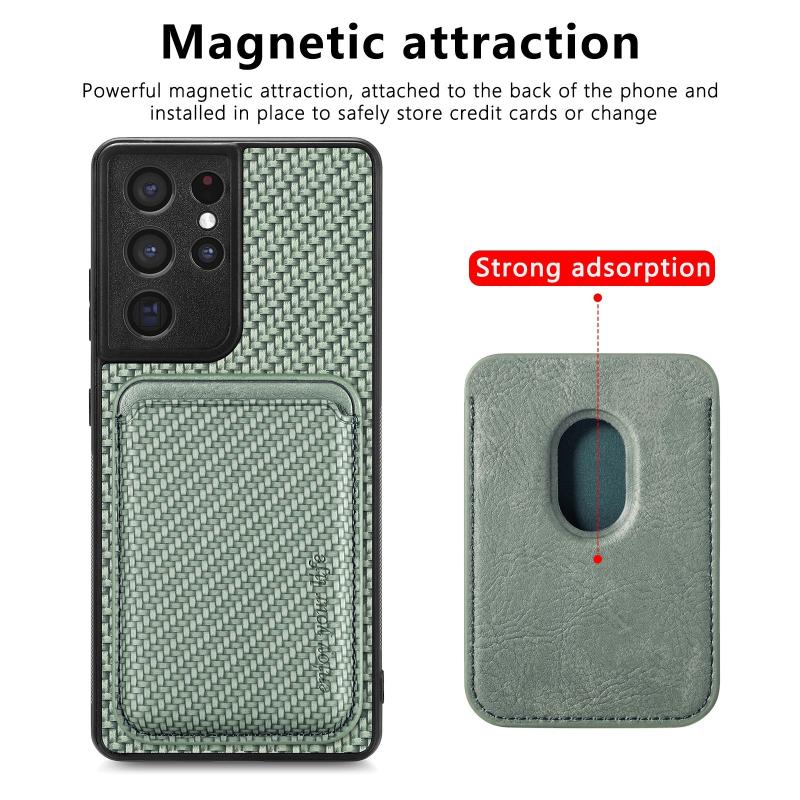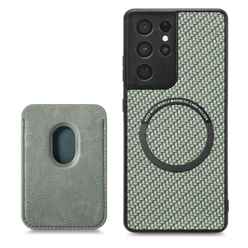 For Samsung Galaxy S21 Ultra 5G Carbon Fiber Leather Card Magsafe Magnetic Phone Case(Green)